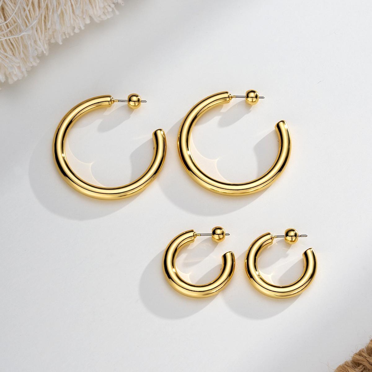 Oufer Carved 18K Real Gold Huggie Hoops Earrings High Polish Waterproof in Silver & Gold 36mm 23mm