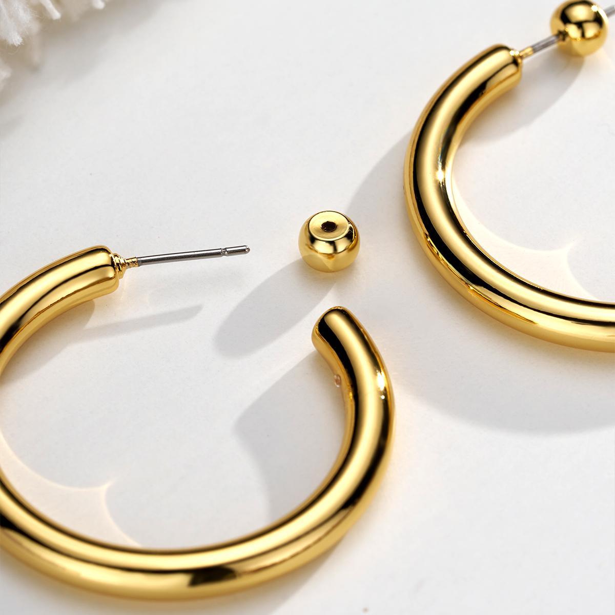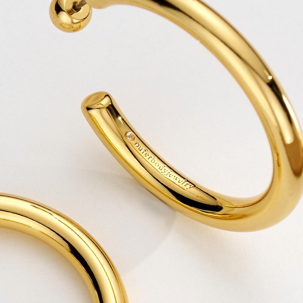 This Oufer Logo Carved Hoop Earring is a stylish accessory perfect for daily wear. Crafted with 18K real gold plating, the high polish finish adds a touch of elegance to any outfit.