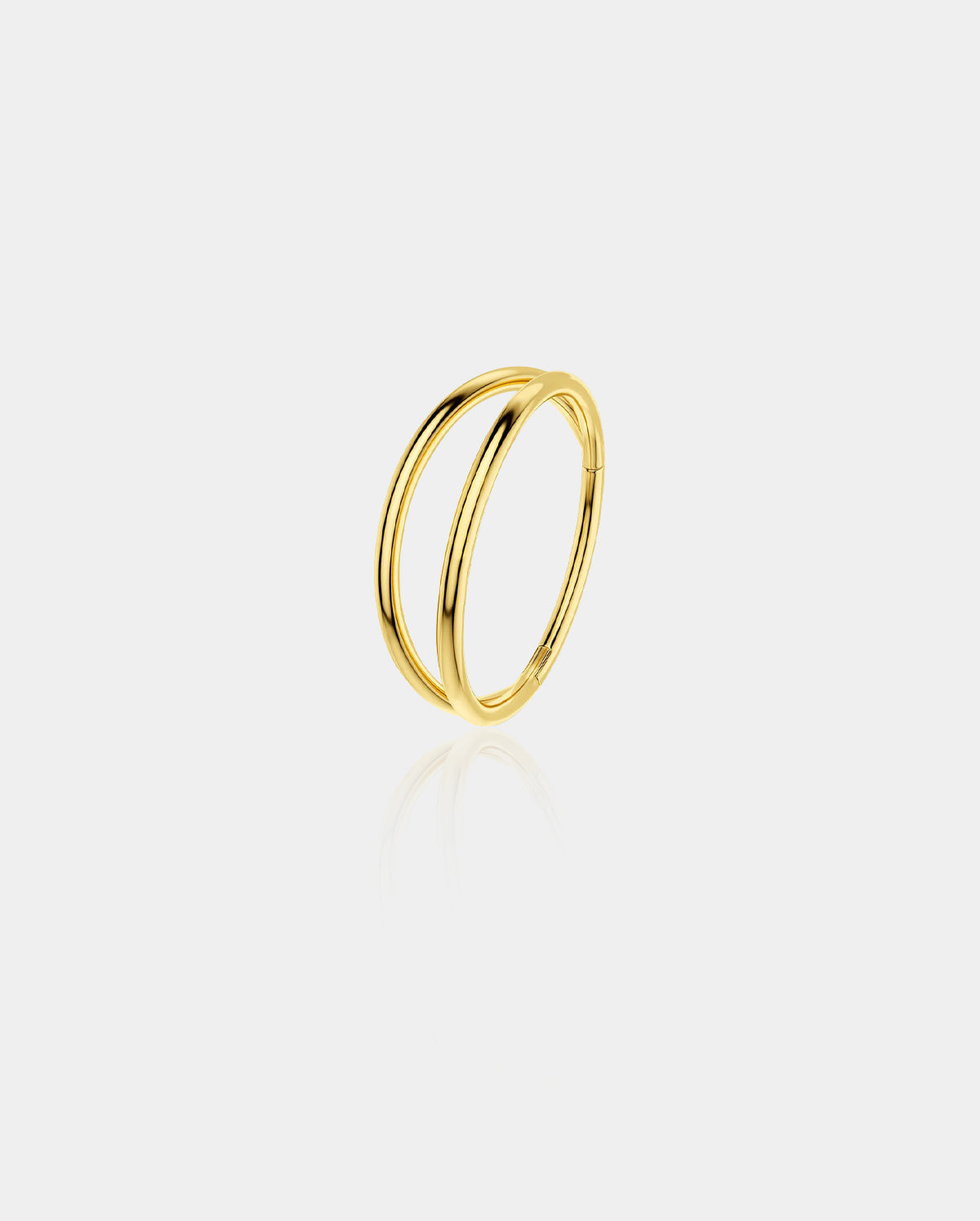 The simple and elegant double 20G double nostril piercing ring design. Let your creativity run free because you can use this ring for almost any piercing. Because of its hinged clasp, it’s super easy to change your piercing without help.