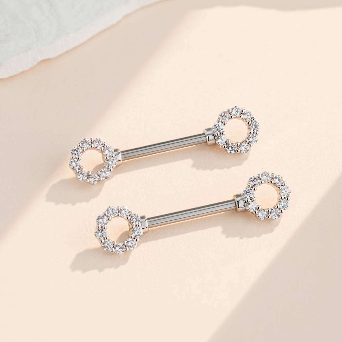 2PCS Clear CZ Circle Top Nipple Ring Set