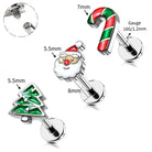 With the eye-catching design featuring Christmas elements, these Christmas cartilage studs are a must-have for anyone who have a joyful festive mood. The internally threaded design ensures comfortable wearing. It's a tiny but powerful statement of your holiday cheer and a stylish way to carry the spirit of Christmas with you everywhere you go.