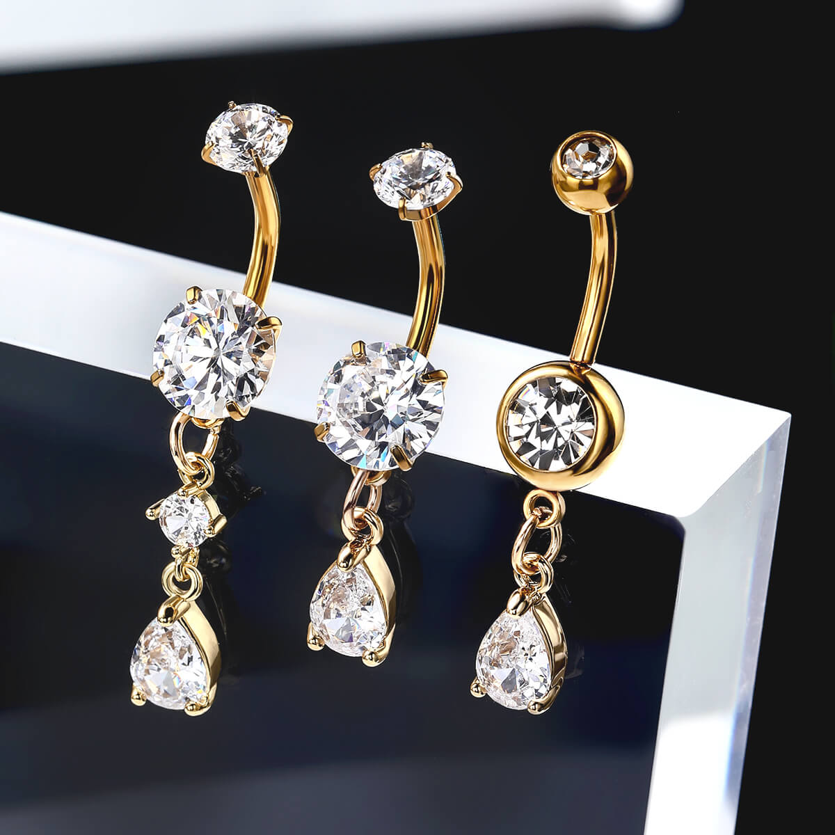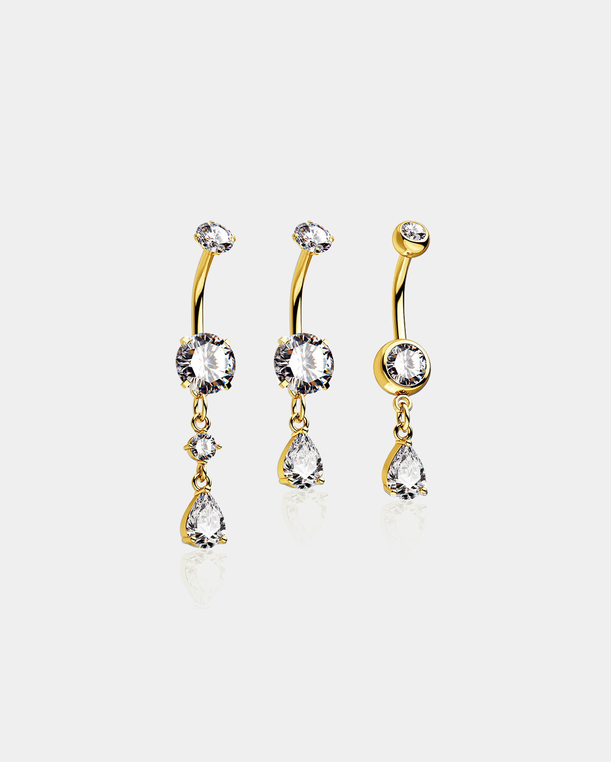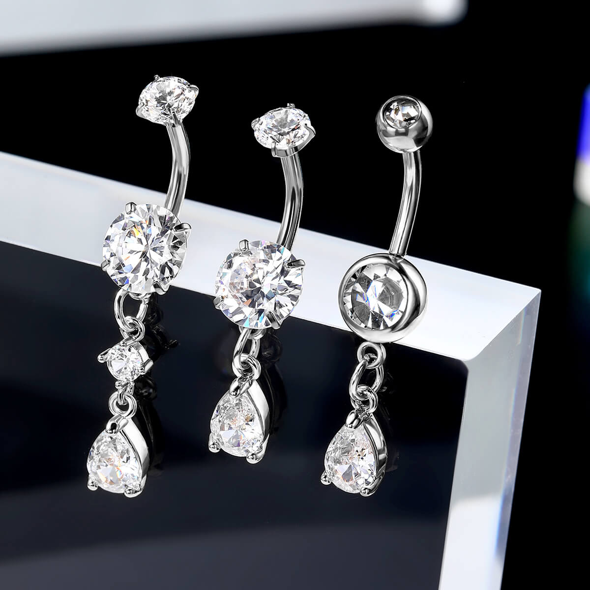 Each belly ring sparkles with high-quality cubic zirconia, perfect for everyday wear or a dazzling party look.