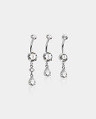 ● This 3-piece belly button ring set features CZ settings to suit your mood and outfit.