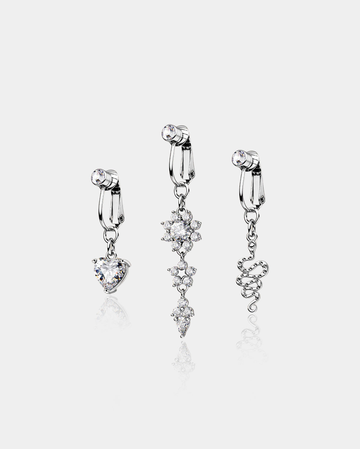 3PCS Heart Flower Snake Dangle Fake Belly Ring
