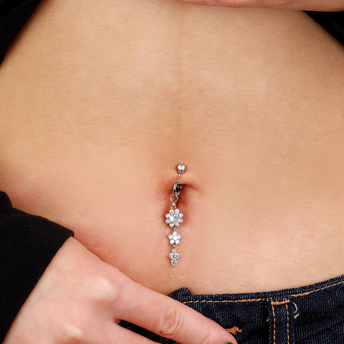 This set includes three unique designs— a romantic heart, a delicate flower, and an edgy snake— each crafted to mimic the look of a real belly piercing without the need for a permanent hole.