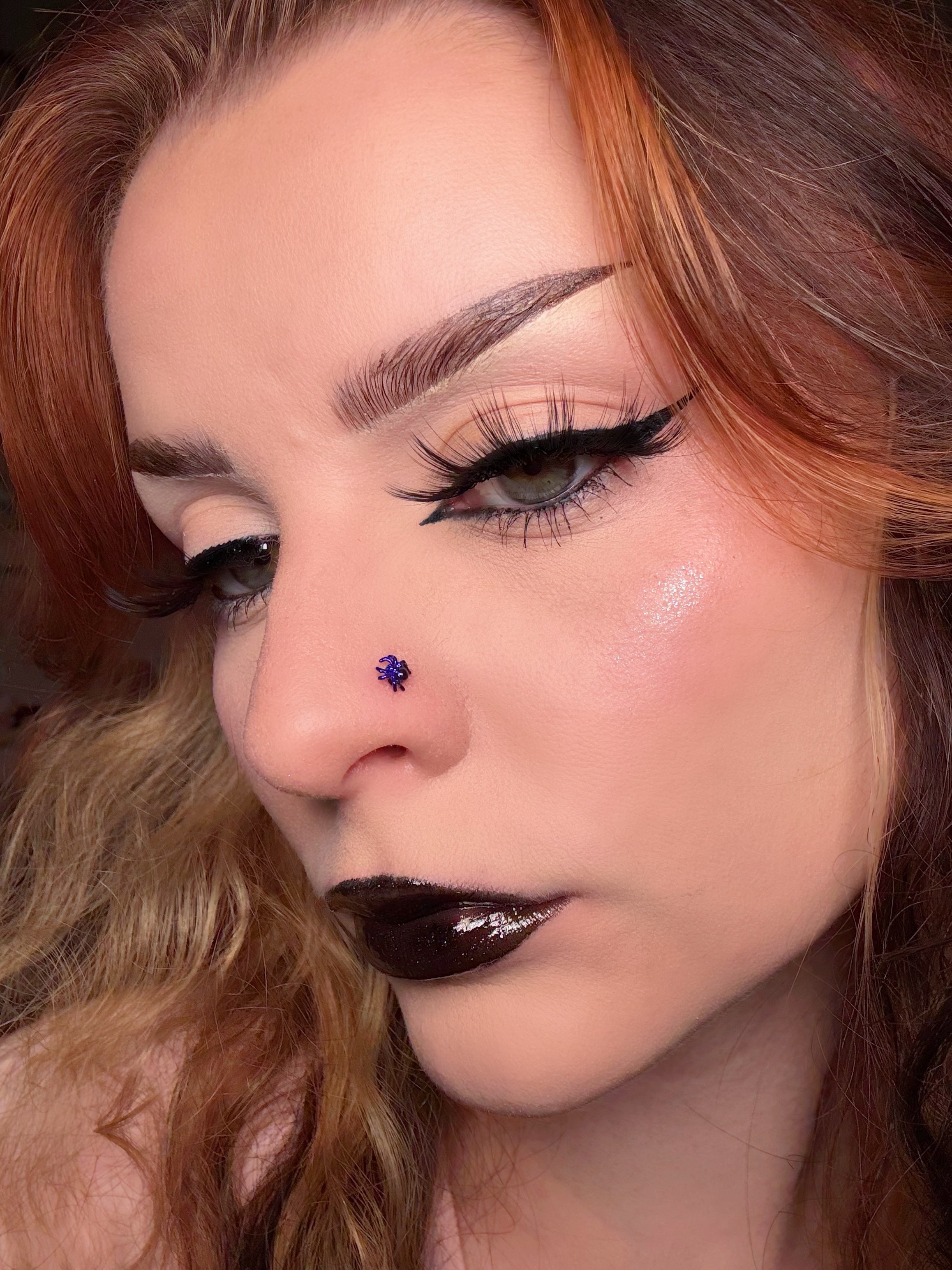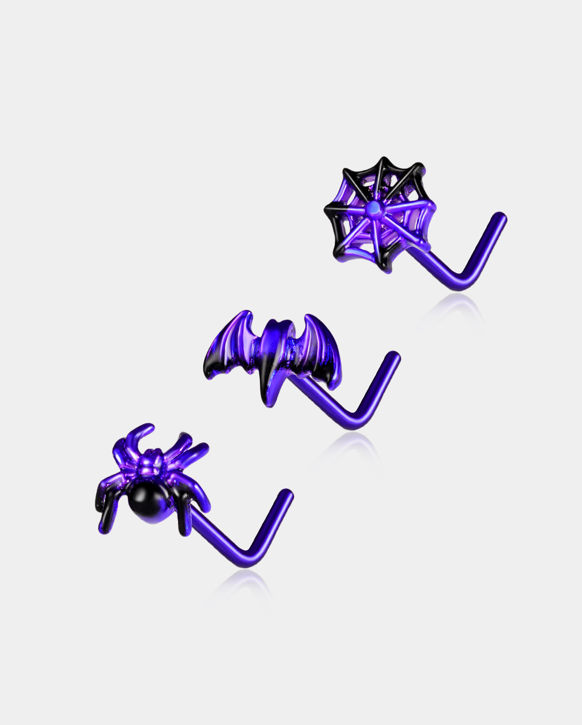 ● This 3PCS Halloween nose stud set features gothic-inspired designs: a delicate spider web, a mysterious bat, and a tiny spider —All accented with dreamy purple color.