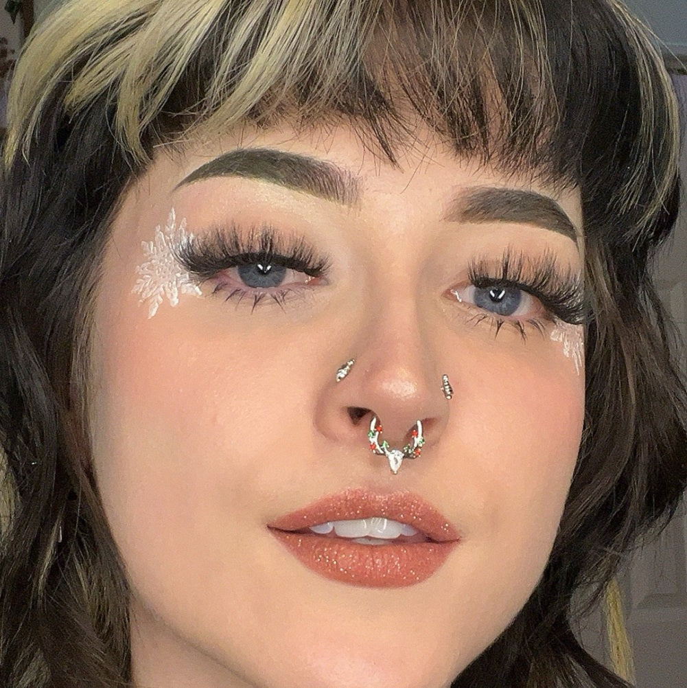 Much like a beautifully decorated Christmas tree, this septum ring glistens and gleams with the holiday spirit.