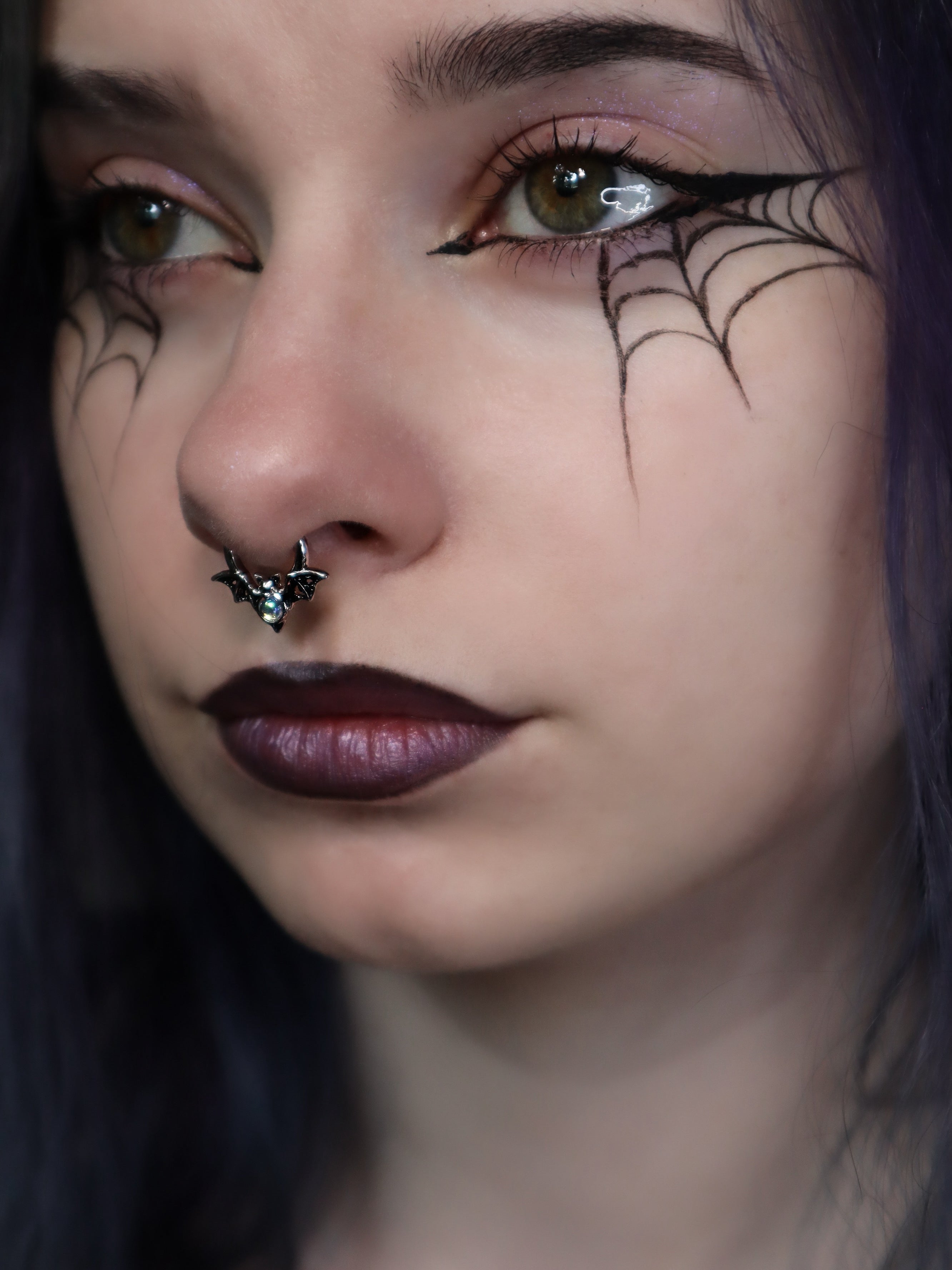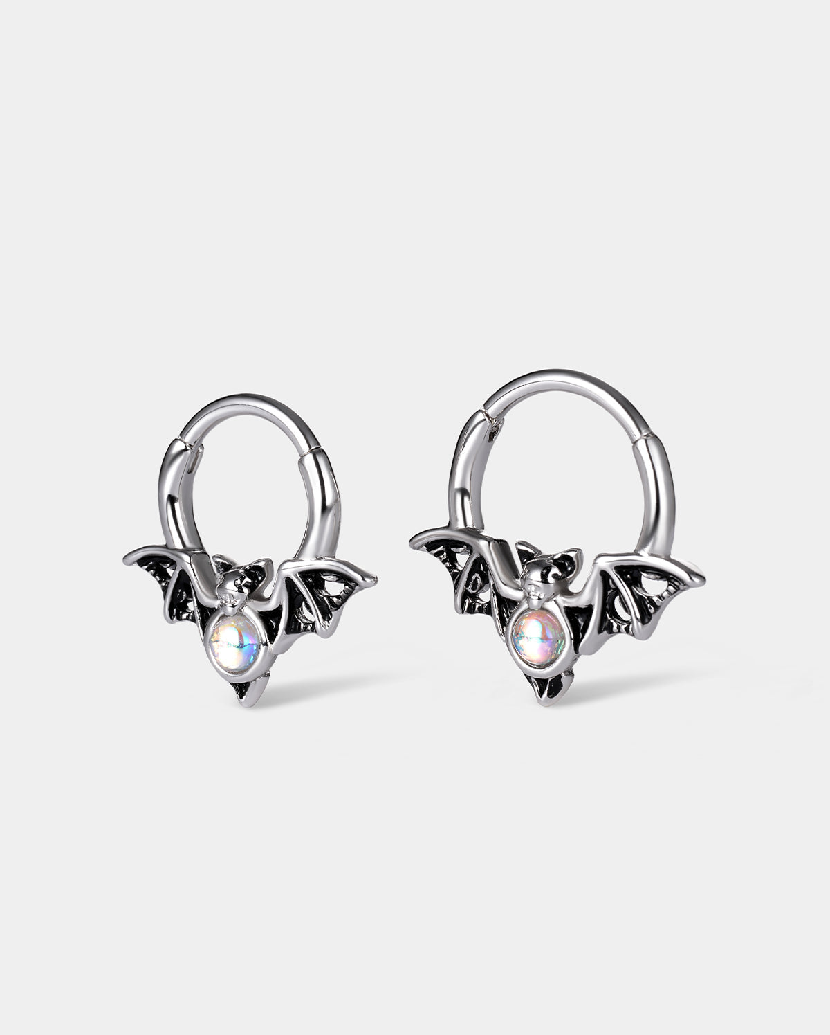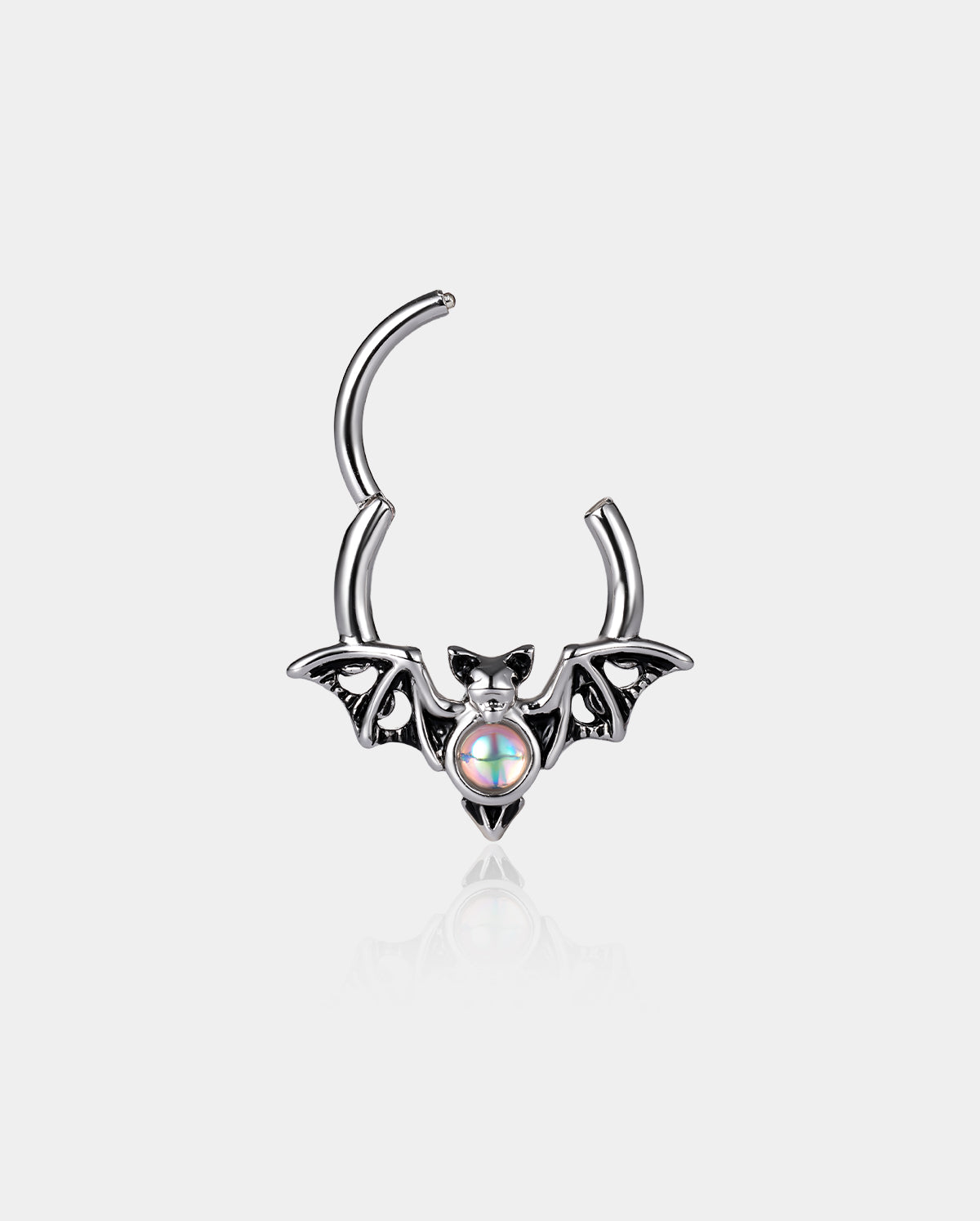 Channel your inner mystic with this bat daith septum ring, featuring a crescent moon cutout and a dreamy faux opal orb.