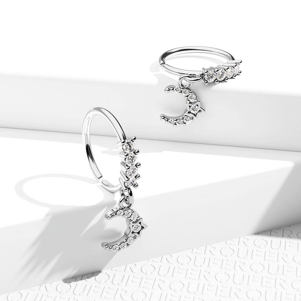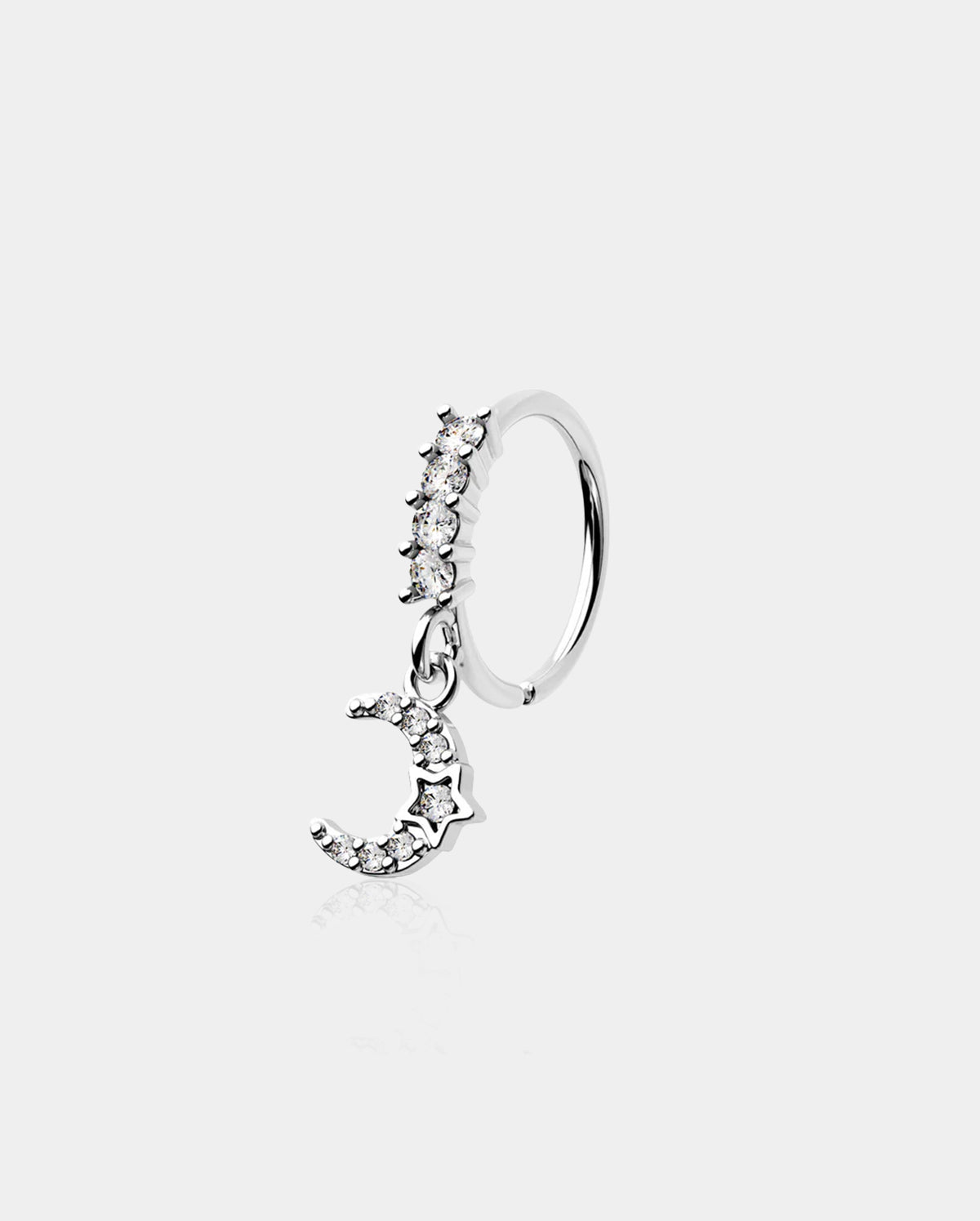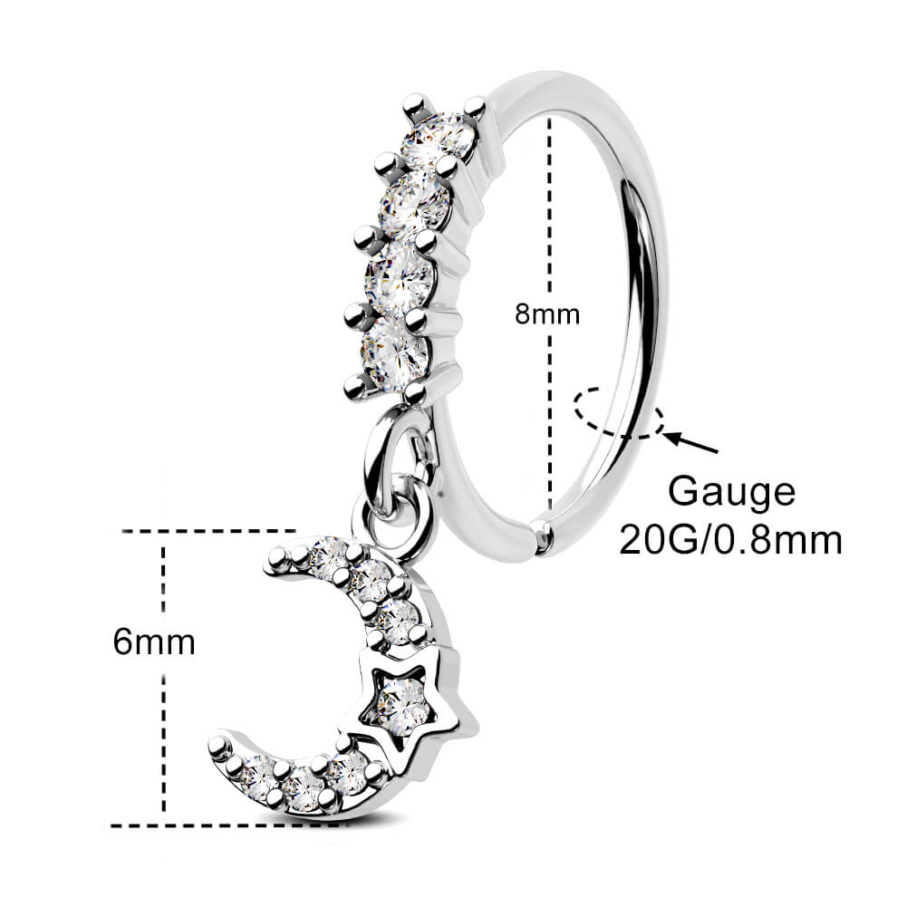 The moon is mystic, intriguing, delicate yet undoubtedly divine. With the embellishments of clear CZ gems, this moon nose ring pops up effortlessly. It's made of 316L stainless steel, which is safe and comfortable to wear. The twist design makes it easy to put on without much effort.