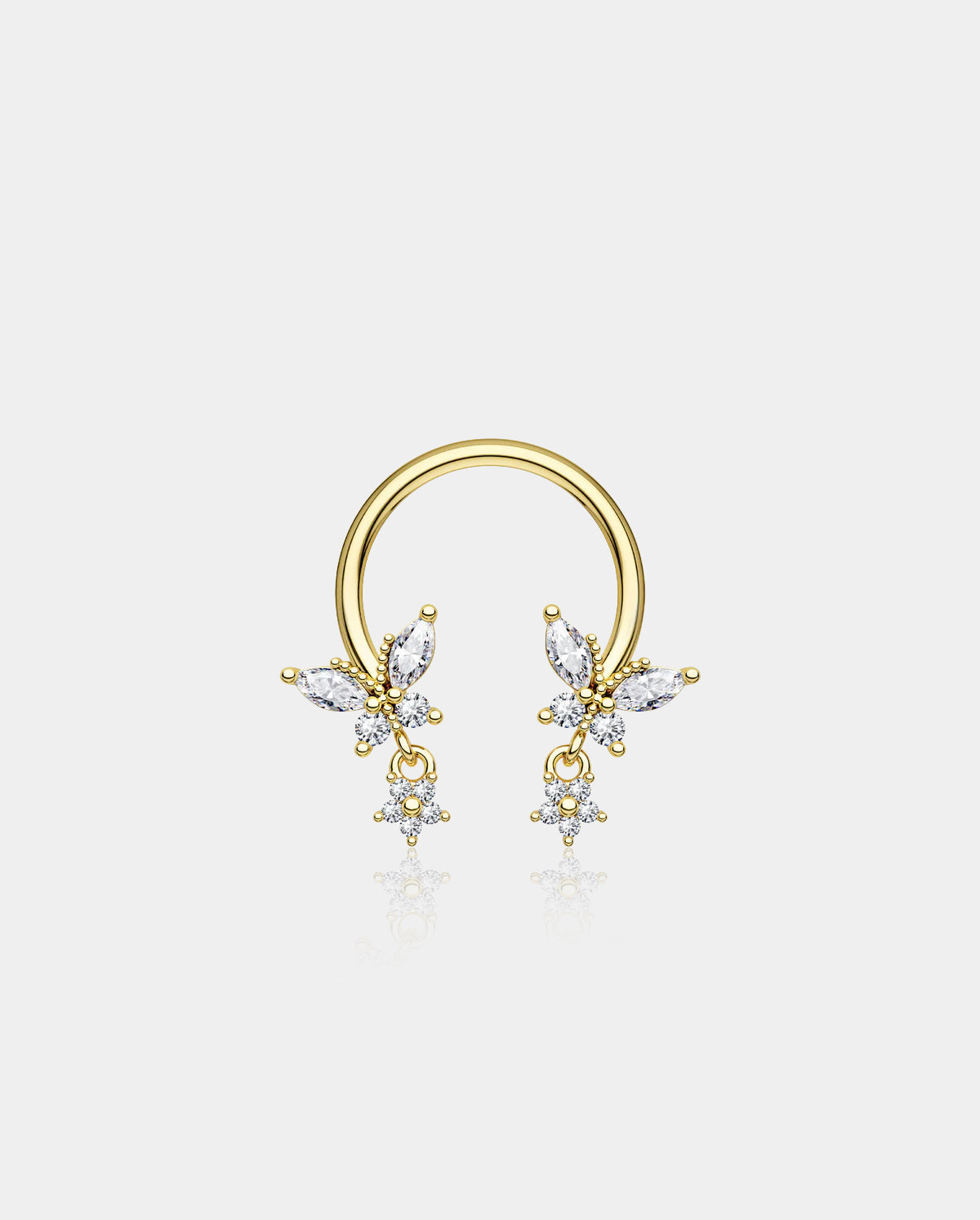 This stylish classic septum jewelry horseshoe features a butterfly drop star crafted with shimmering CZ gems. Built to last, it is made of 316L stainless steel, providing comfort and protection against corrosion and tarnishing.
