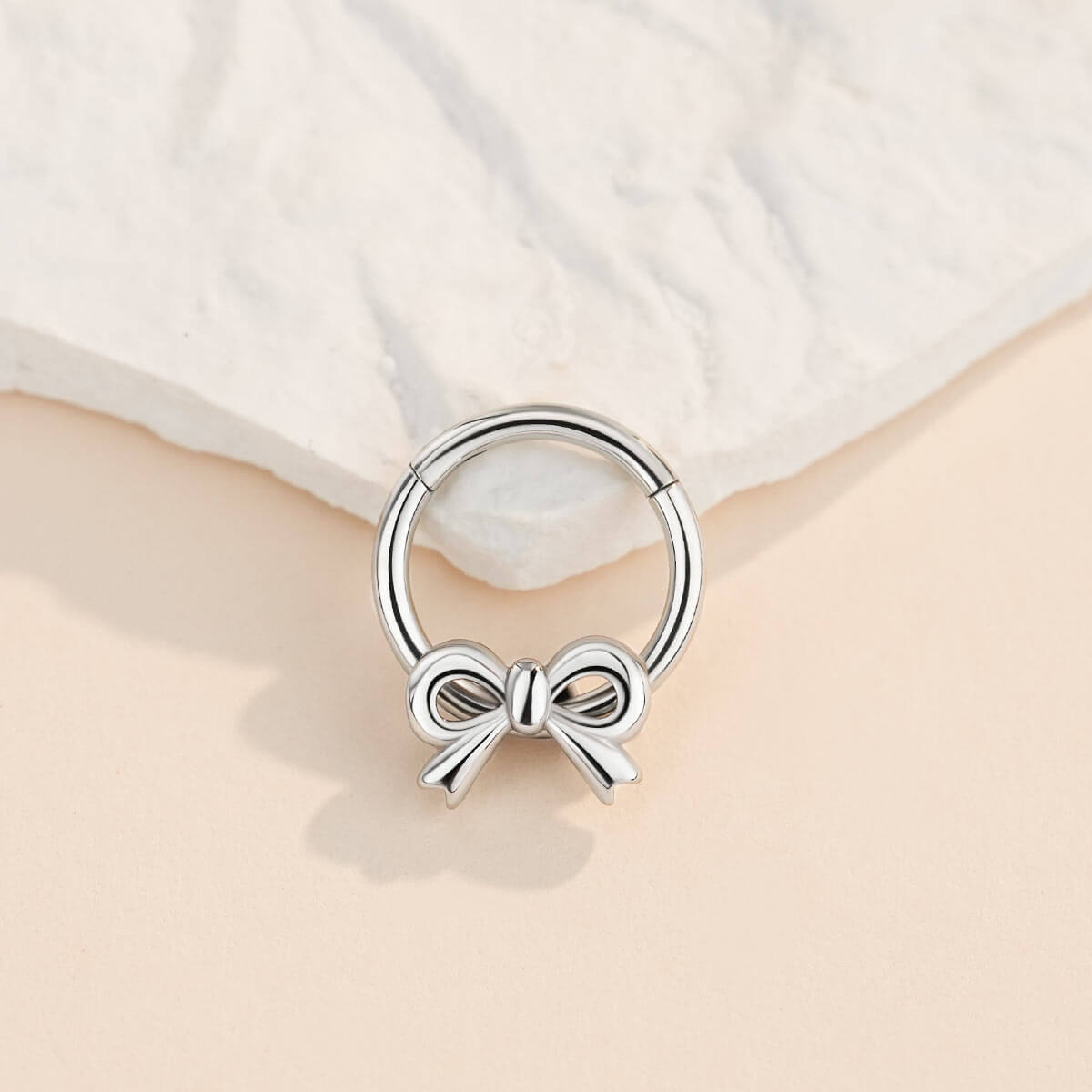 This bow septum ring features a wide, chubby ribbon, the design seamlessly blends style with functionality. It is an opportunity to showcase a daring sense of style.