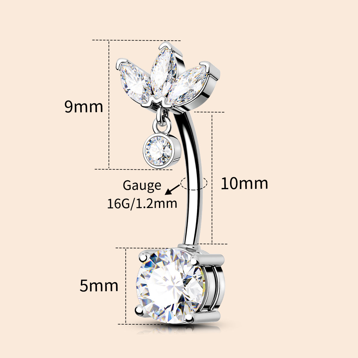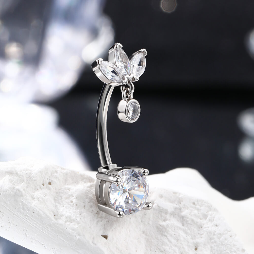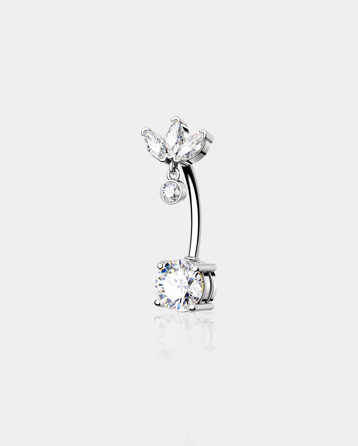 Atop this navel ring, a meticulously crafted lotus takes center stage.