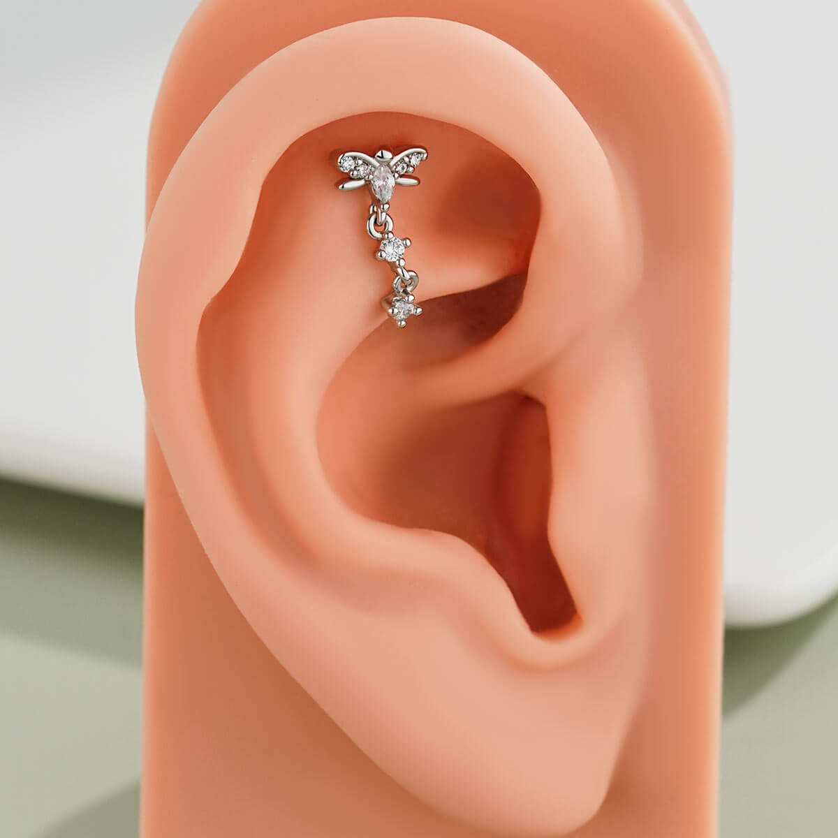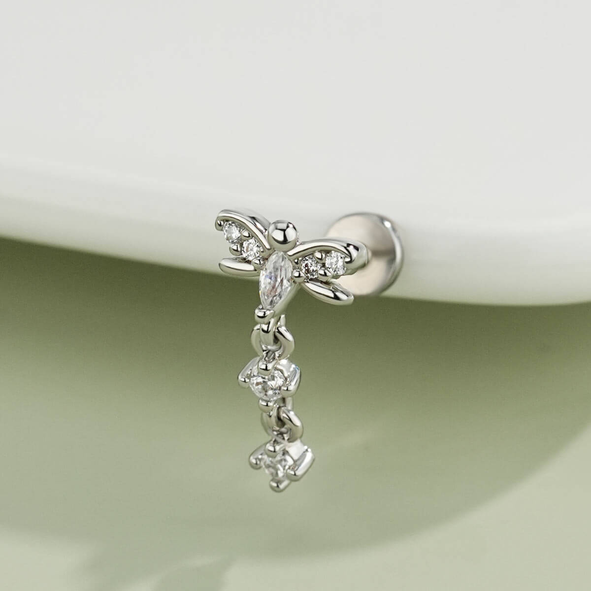 This 16G dragonfly Helix stud is a remarkable piece that seamlessly merges nature's grace with dazzling glamour. Adorned with clear cubic zirconias, each stone glistens brightly, casting a spellbinding play of light and adding a touch of opulence to the delicate structure. Perfect for helix, tragus, lip or conch piercings.