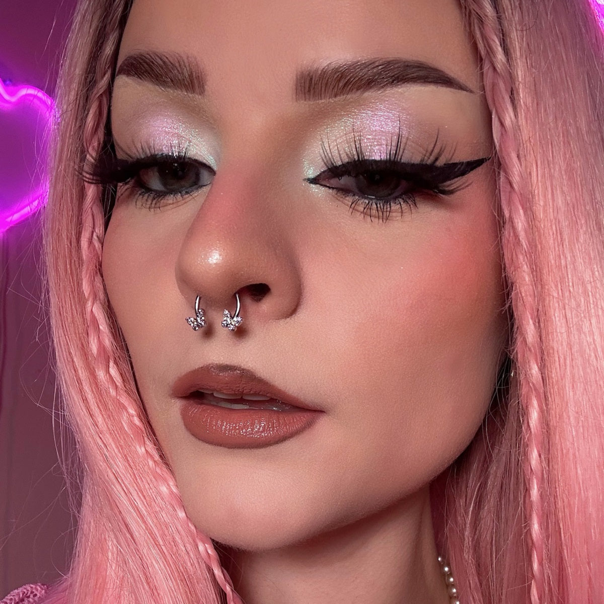 This septum ring features a captivating blend of fantasy and elegance. Inspired by the magical world of fairies, this ring features a dainty butterfly crafted with meticulous precision. Adorned with shimmering clear cubic zirconias, each stone twinkles like a star, adding a touch of celestial charm to the delicate wings. The horseshoe shape ensures a comfortable and secure fit.