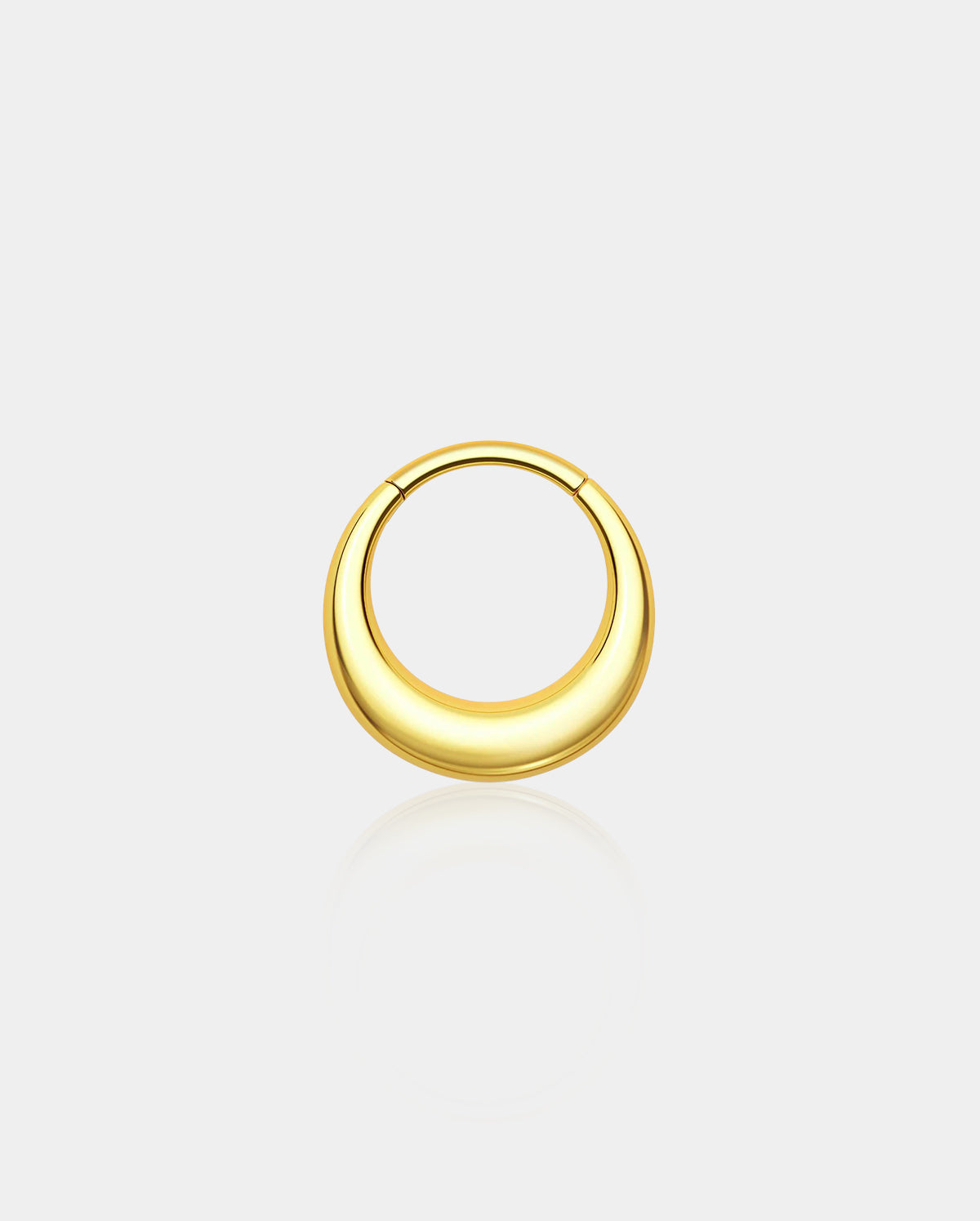 This is a stunning and unique piece of jewelry that adds a touch of elegance and sophistication to any outfit. The chic yet bold style of this hinged segment thick septum ring is enhanced by its smooth and seamless construction, providing a comfortable and secure fit. It sits snugly against the skin, preventing snagging or pulling on clothing or hair.