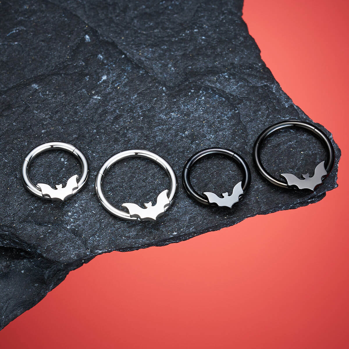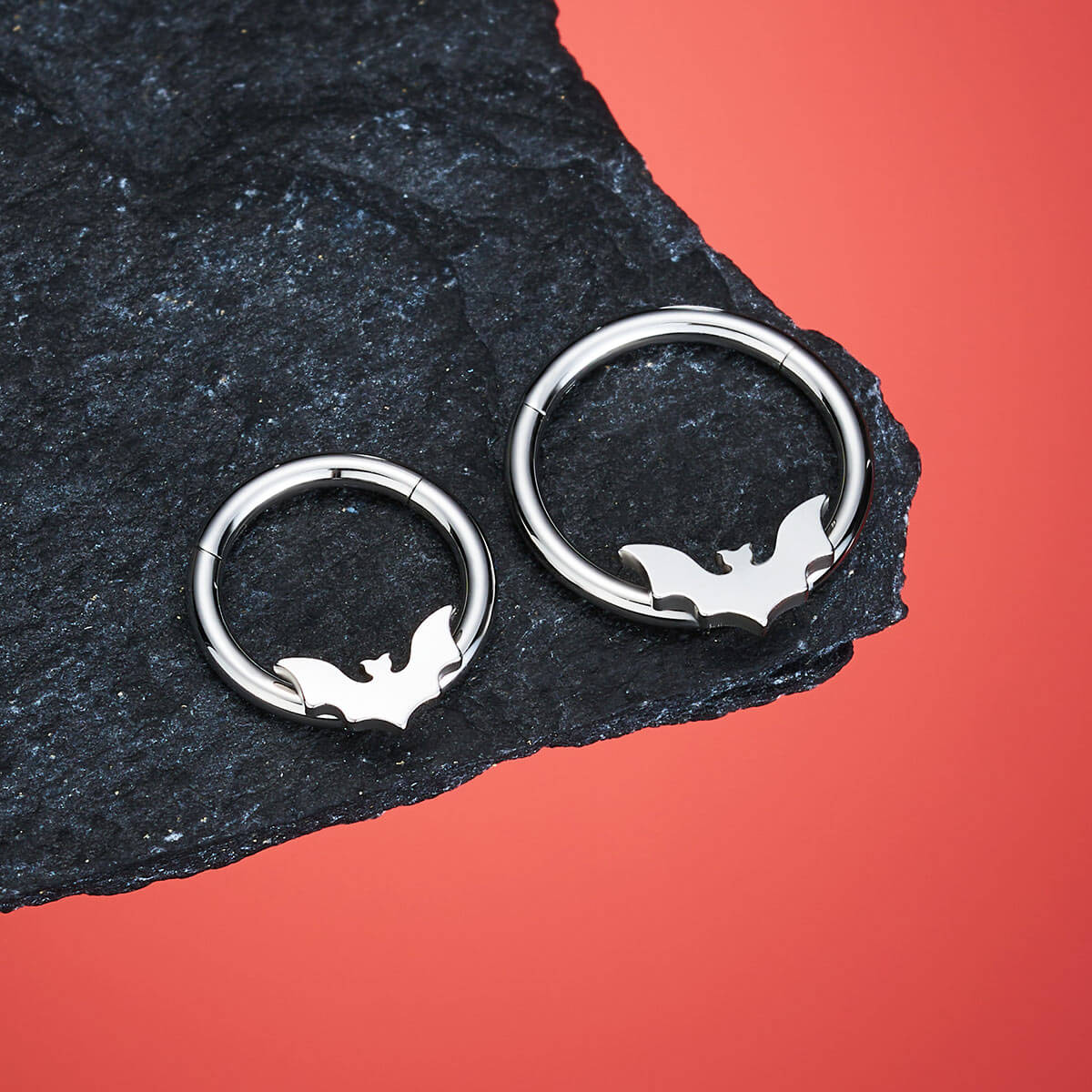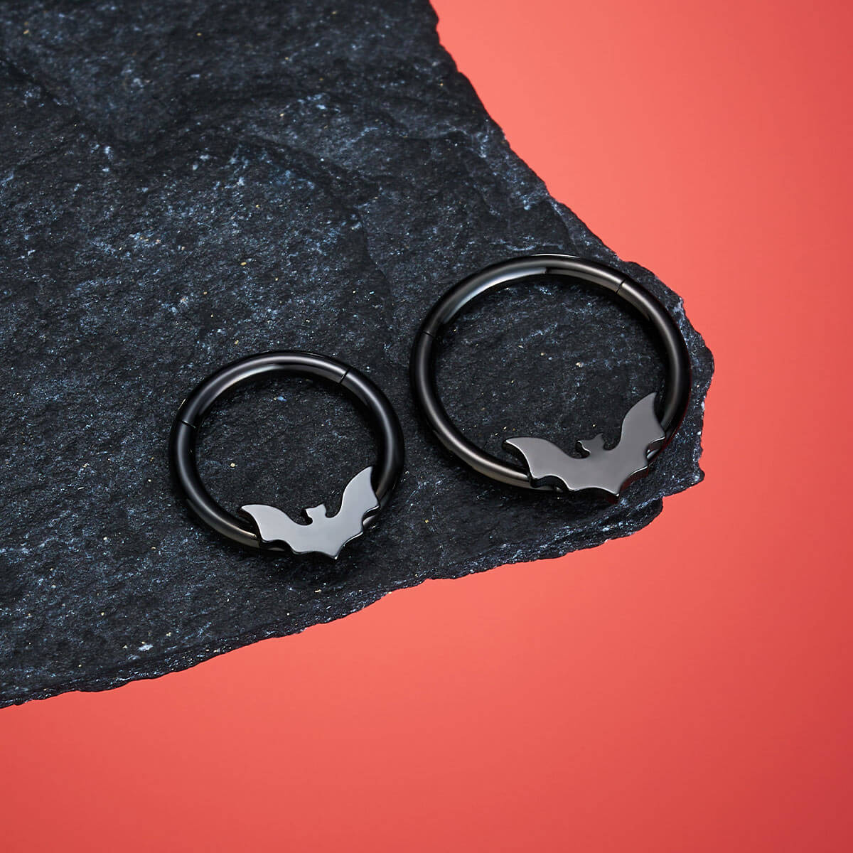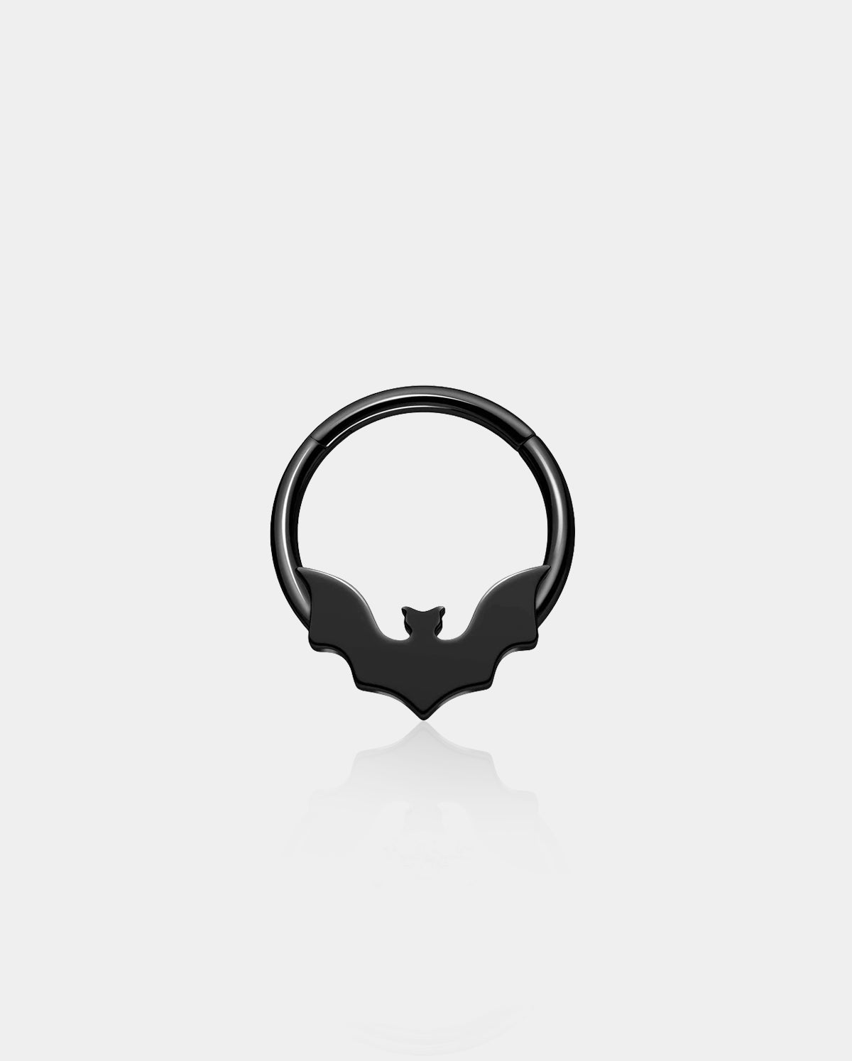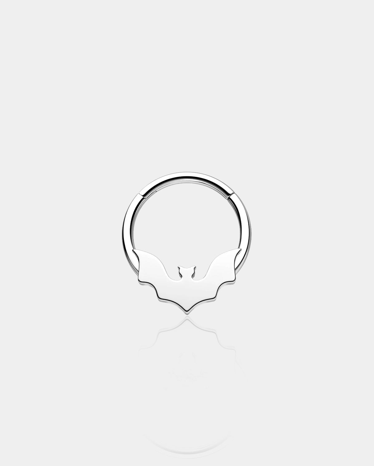This sleek and stylish piece brings a subtle edge to your look. This bat septum ring features a minimalist bat design, with its wings spread wide in a flat, streamlined silhouette.