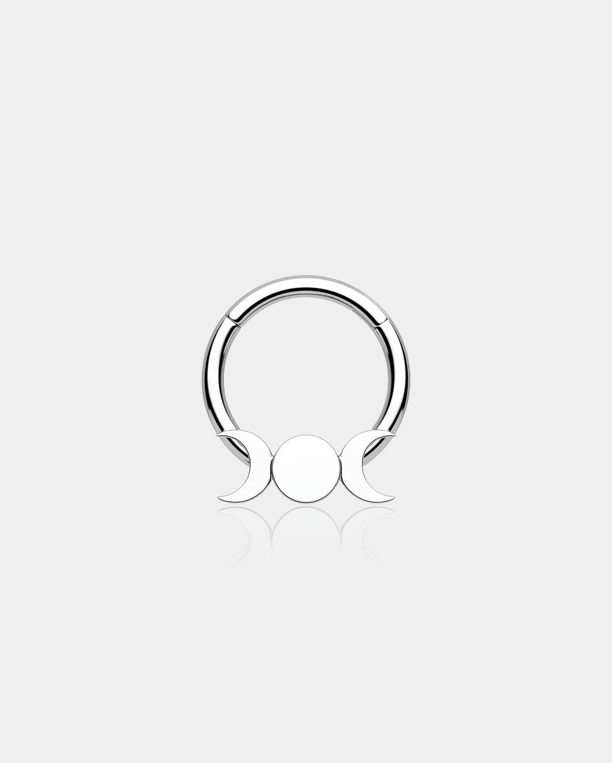 The sleek and minimalistic design of the ring adds a touch of modernity to its overall aesthetic. Whether you're a fan of astrology or simply appreciate the beauty of the moon, this septum ring is the perfect accessory to express your individuality and add a touch of cosmic charm to your look.