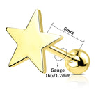 This star cartilage earring features a charming star-shaped design, which adds a touch of celestial elegance to your ear jewelry collection. The star shape is flat, providing a minimalist and sleek appearance.