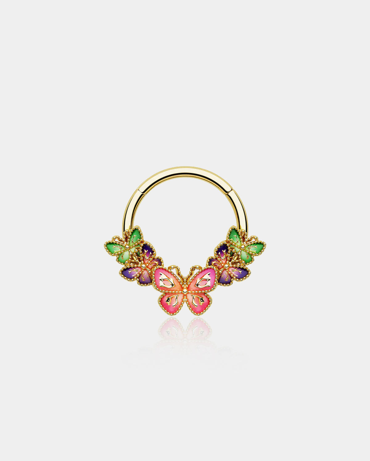 This gorgeous iridescent butterfly septum ring is a captivating piece of jewelry.