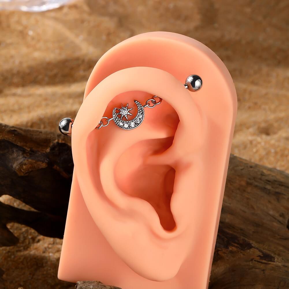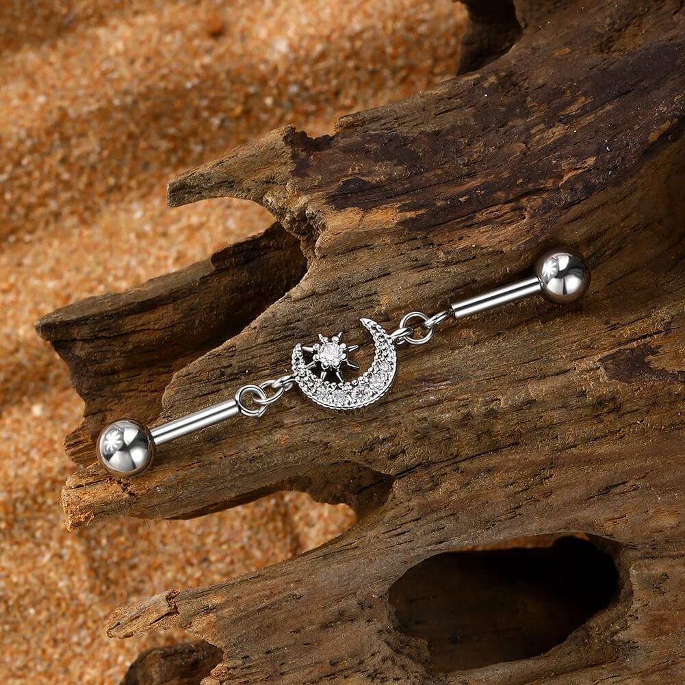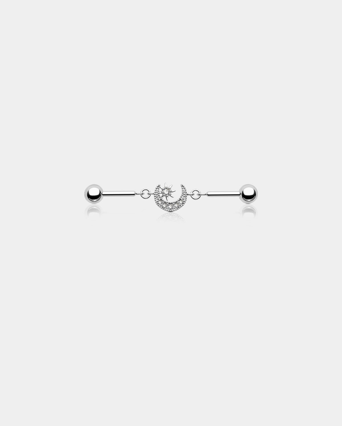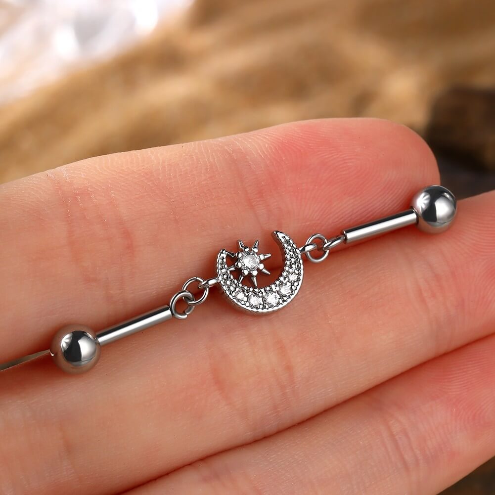 Introducing our exquisite 14G moon piercing industrial barbell, a celestial-inspired piece that elevates your piercing game to new heights. Crafted with meticulous attention to detail from premium surgical stainless steel, this barbell features a captivating moon charm that adds a touch of mystique and elegance to your industrial piercing. Polished to a radiant shine, the barbell exudes sophistication and style.