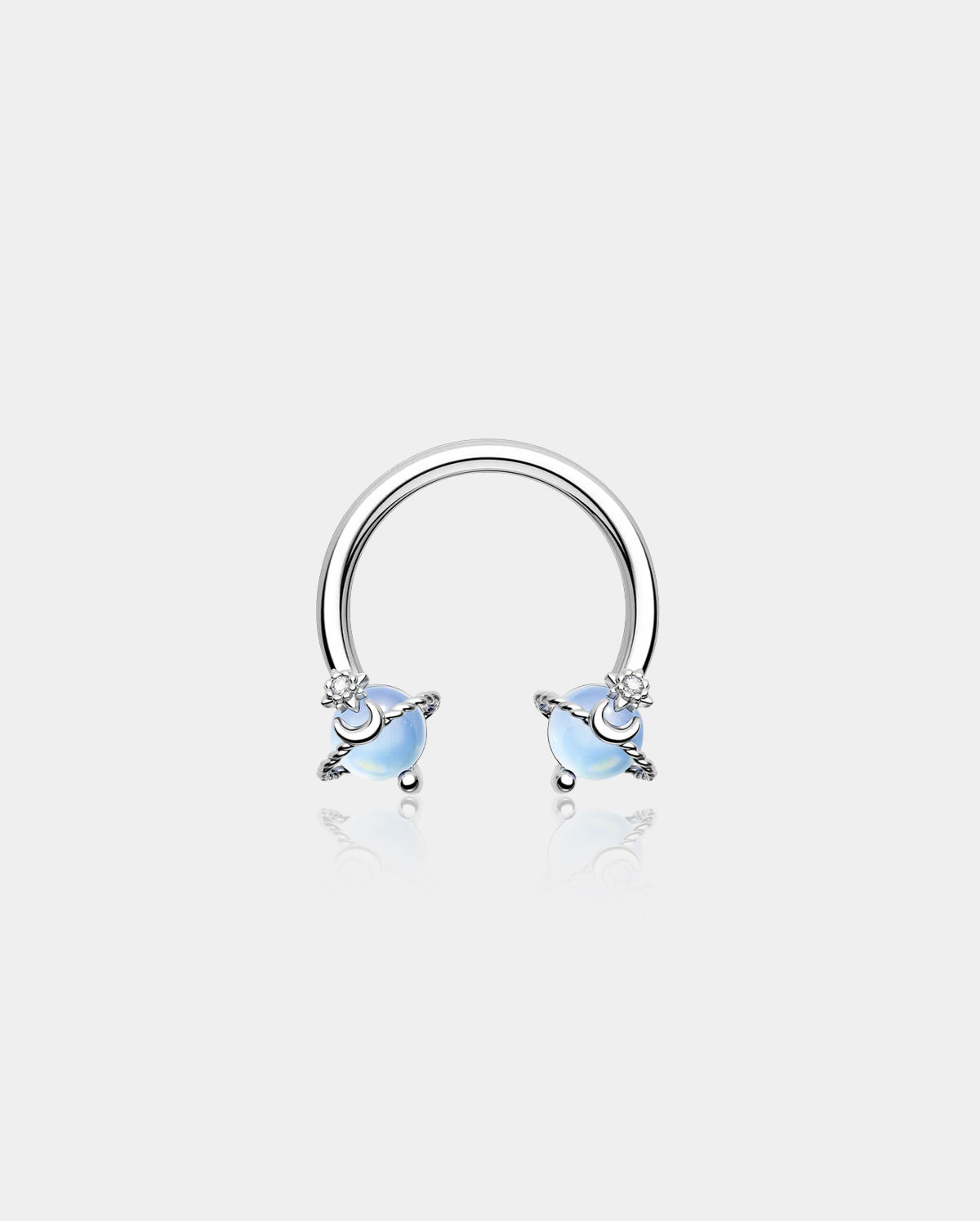 This planet horseshoe septum ring offers a playful and cosmic touch to your piercing collection. Crafted with precision and detail, this horseshoe ring features miniature planets on both ends, adding a whimsical and celestial flair.