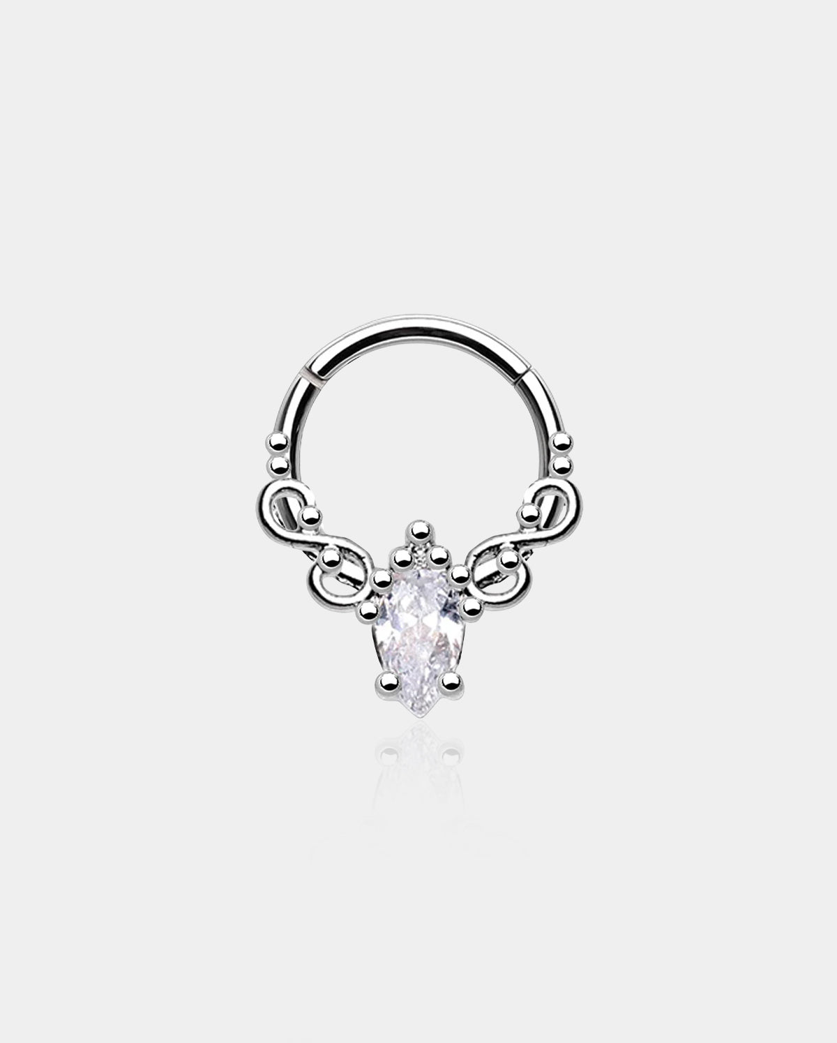 Magic Mirror Teardrop: If you're looking for fashionable selections for your piercing then you will love this 16 gauge septum ring. It is inspired by the magic mirror in fairy tales, eye-catching bottom arc set with an AAA luster grade clear accent that will draw the eye, looks like a teardrop of a magic mirror, fully story feeling. it works well in multiple piercings like the septum and daith piercings. This sumptuous septum jewelry will take your breath away!