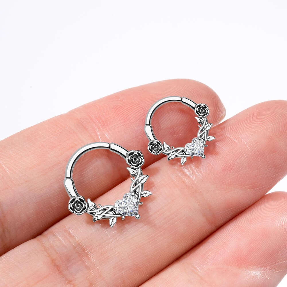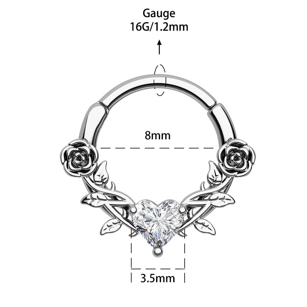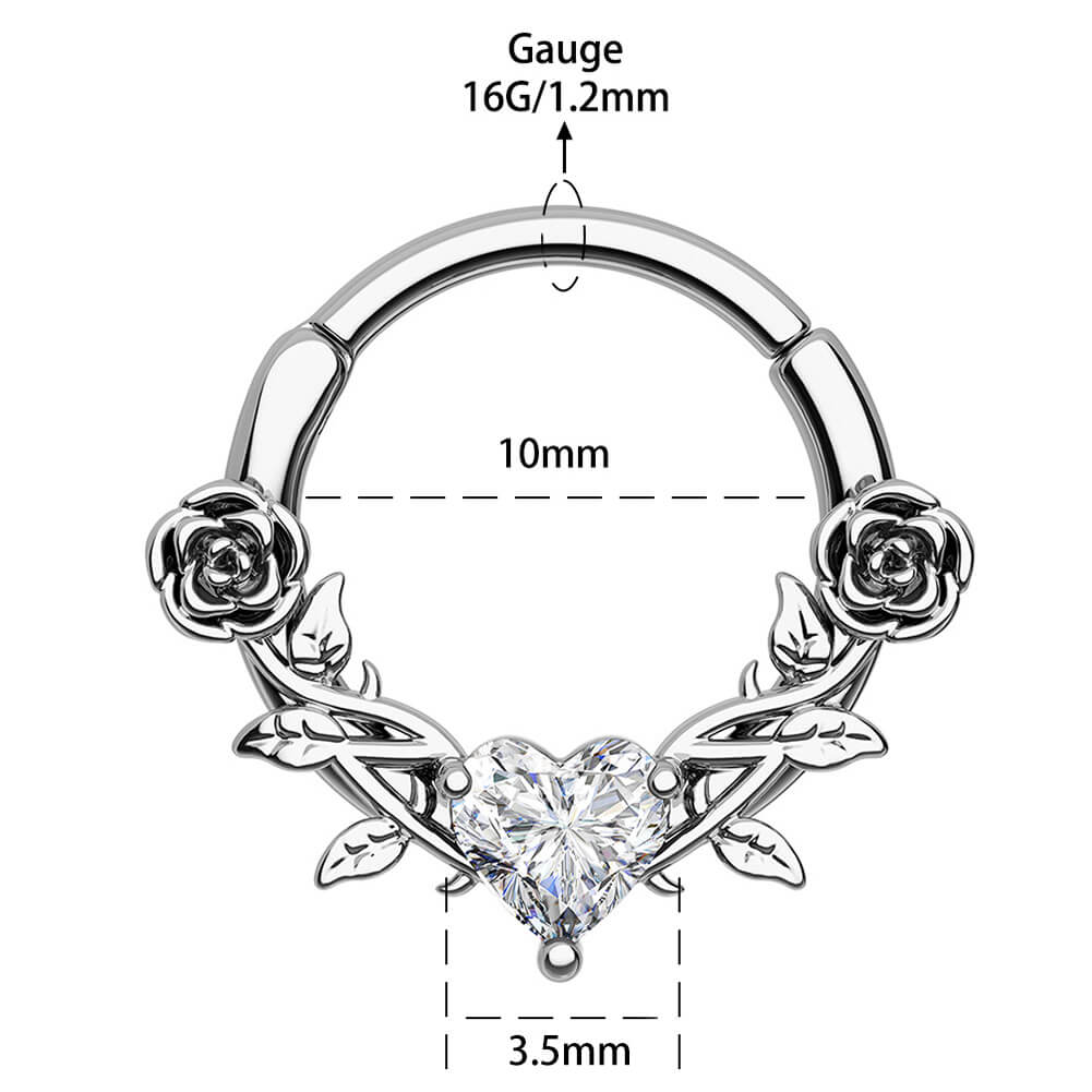 Rose Love Heart CZ Gem Clicker Septum Ring