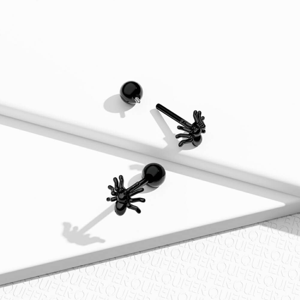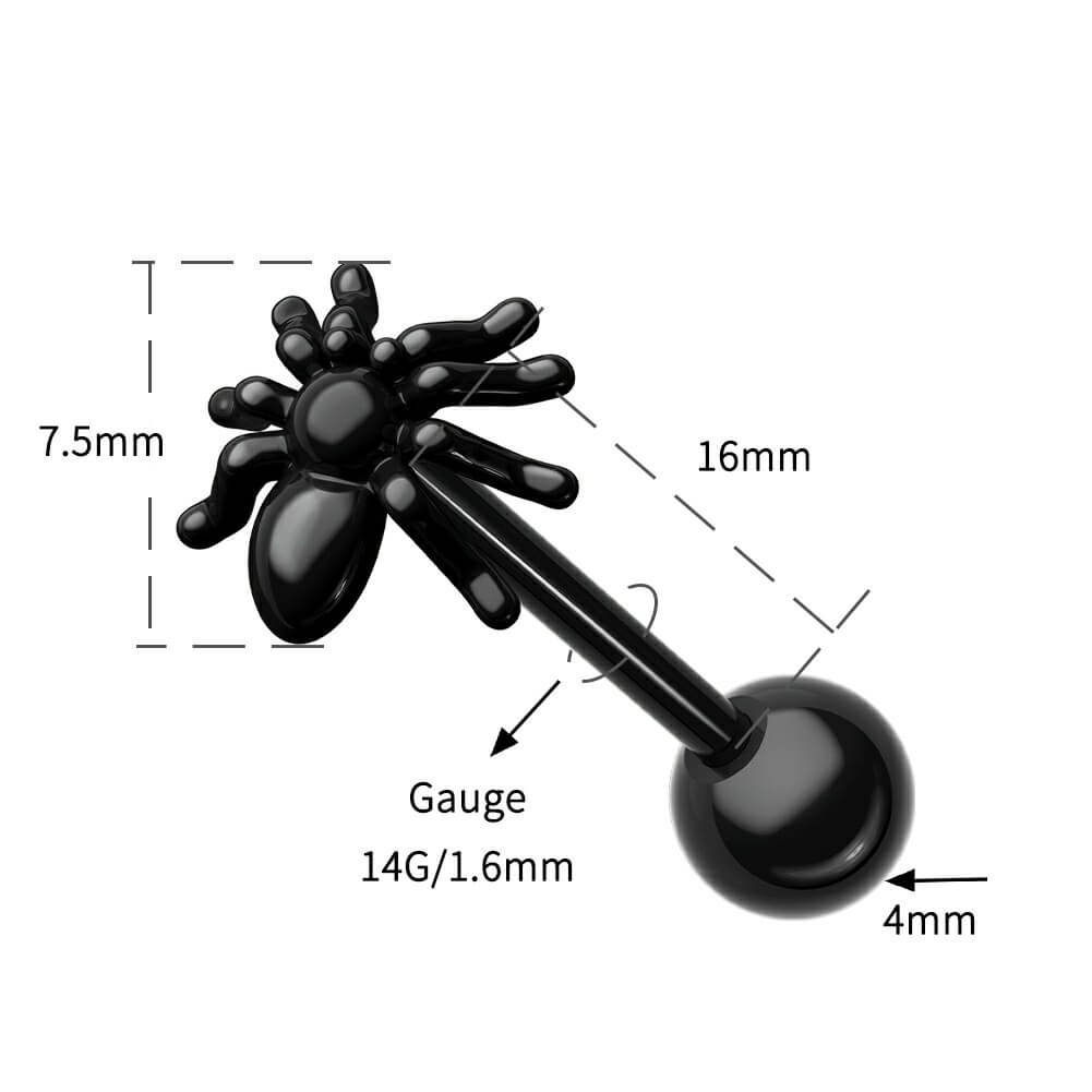 Spooky! The spider on the tongue piercing ring is so funny. This tongue ring is internally threaded and made of safe material high quality 316L stainless steel, no worries at all.