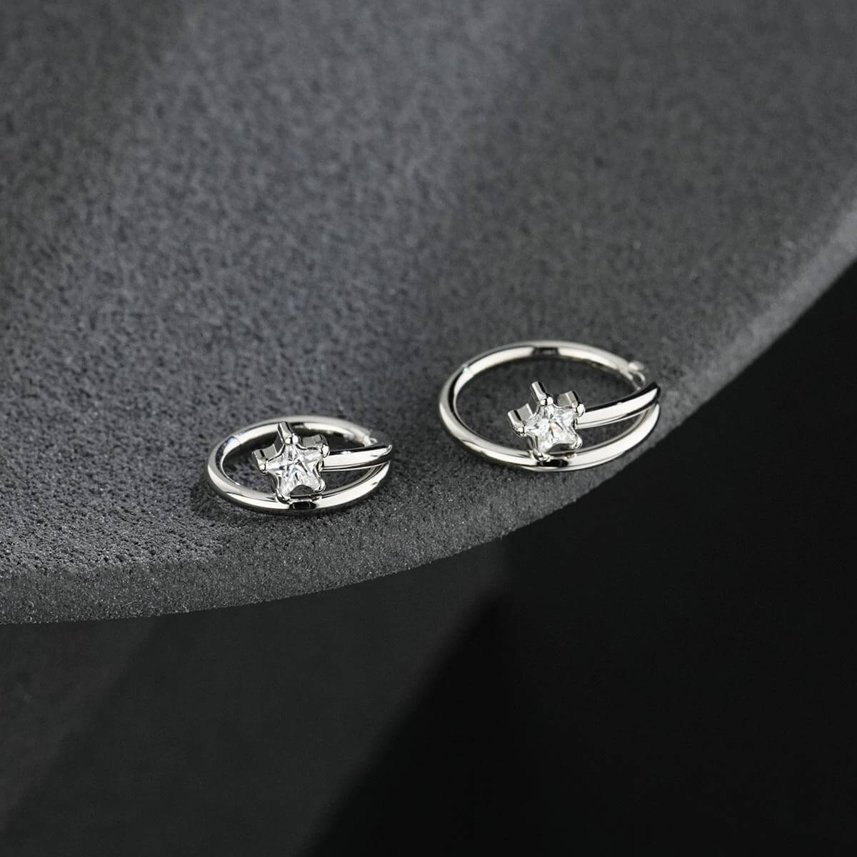 The star cartilage earring is adorned with a brilliant cubic zirconia stone, adding a pop of sparkle that catches the light with every movement. It is perfect for helix, tragus, or conch piercings.