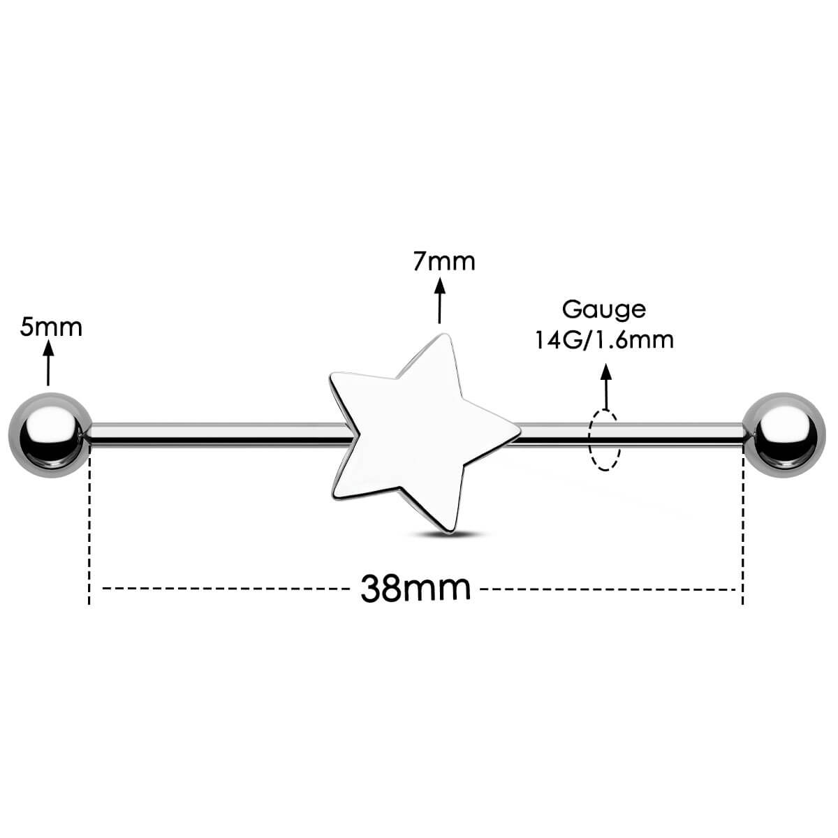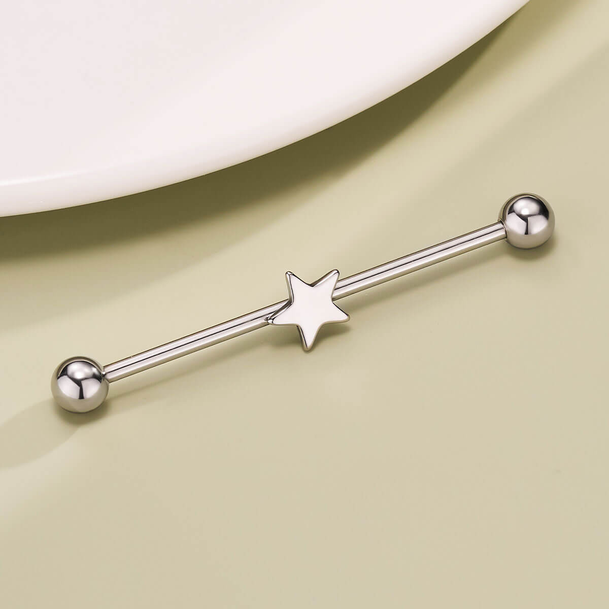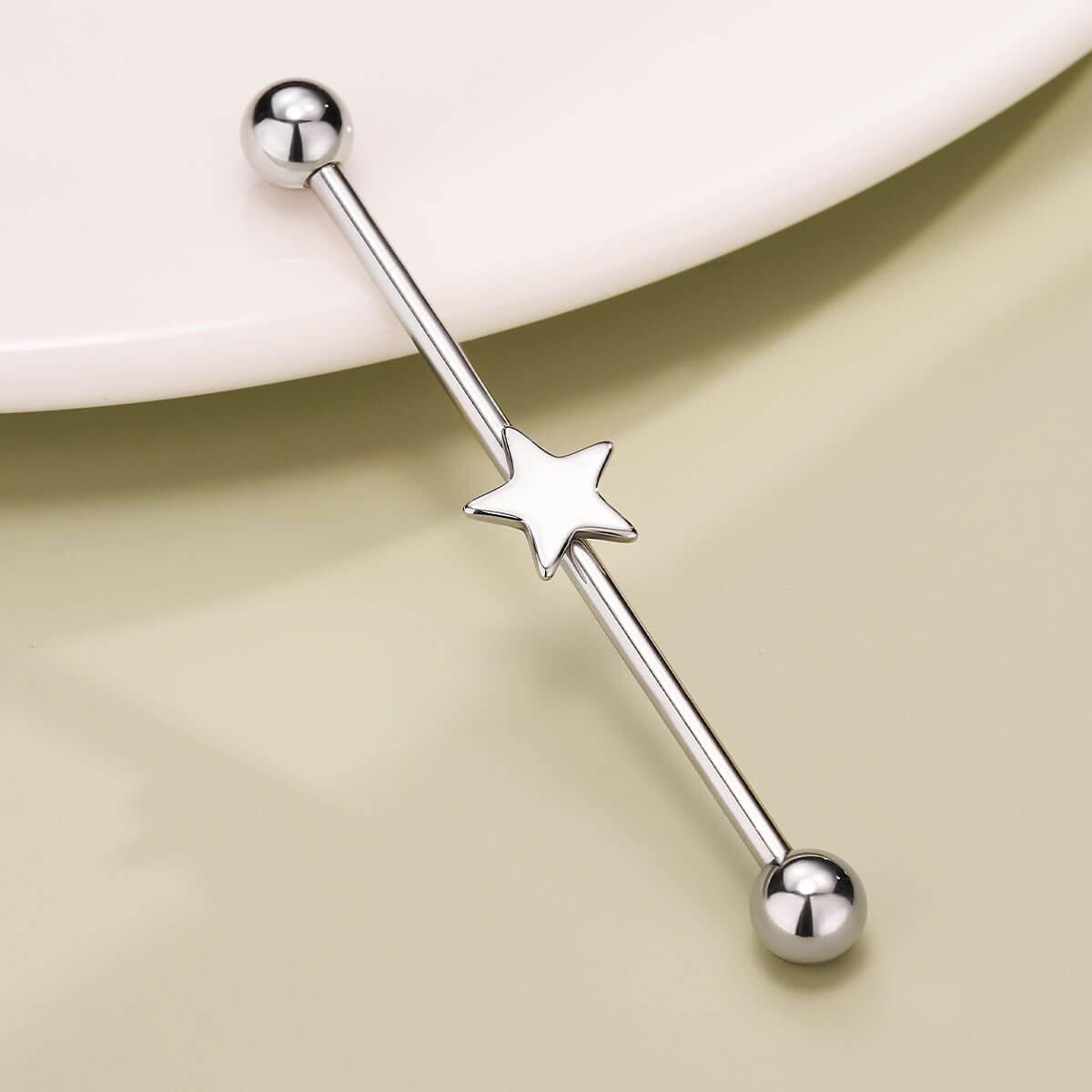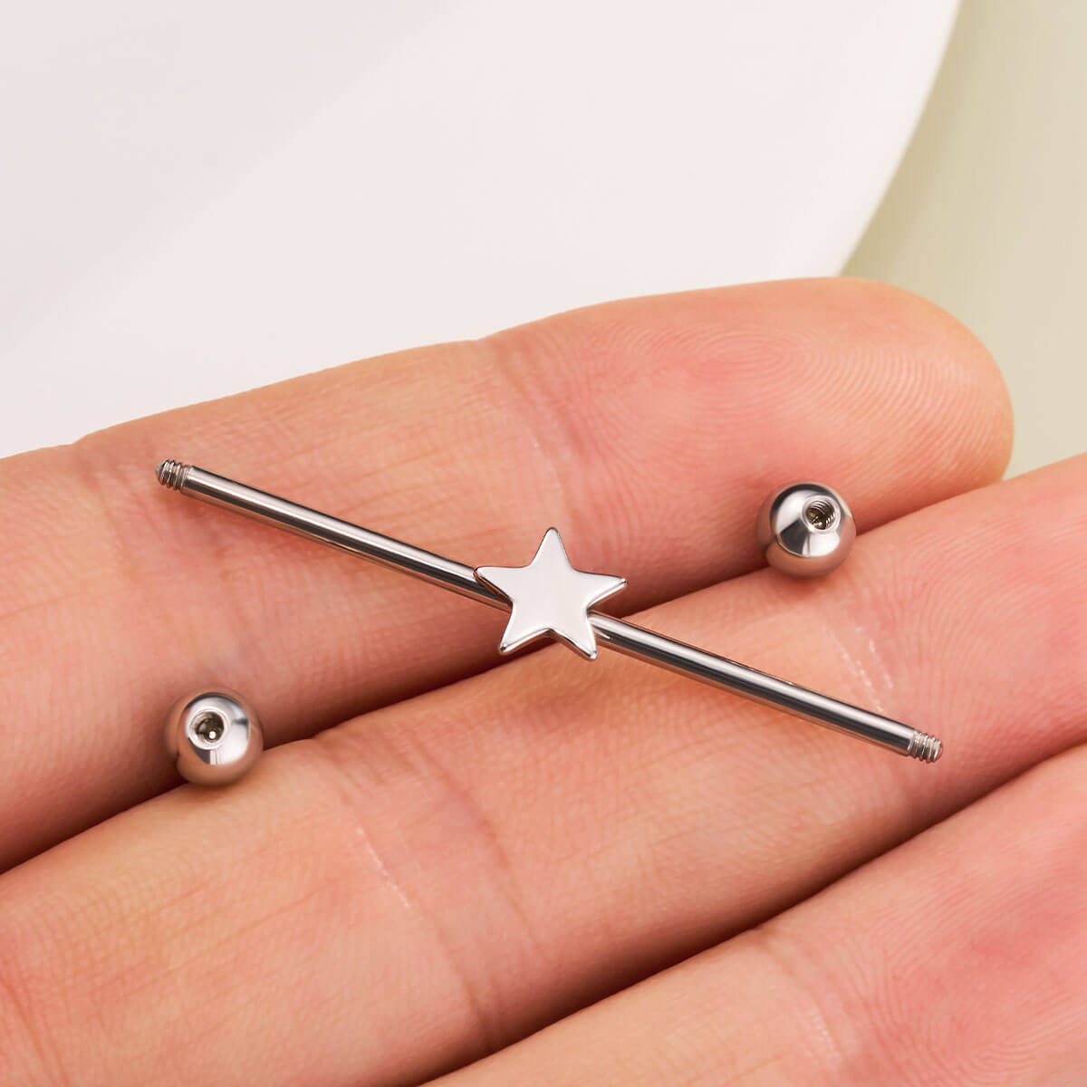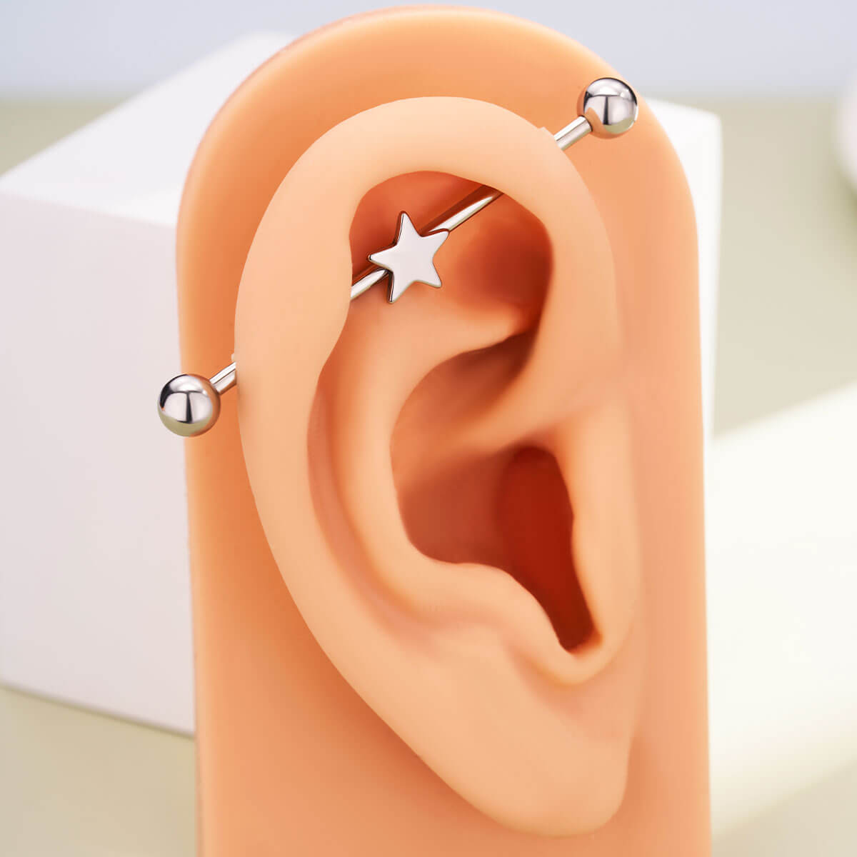 Introducing our 14G star industrial barbell, a stunning fusion of style and sophistication for your industrial piercing. The star motif adds a touch of whimsy and personality to your look, making it stand out from the crowd. Designed for comfort and versatility, it's perfect for everyday wear and suitable for various compatible piercings.