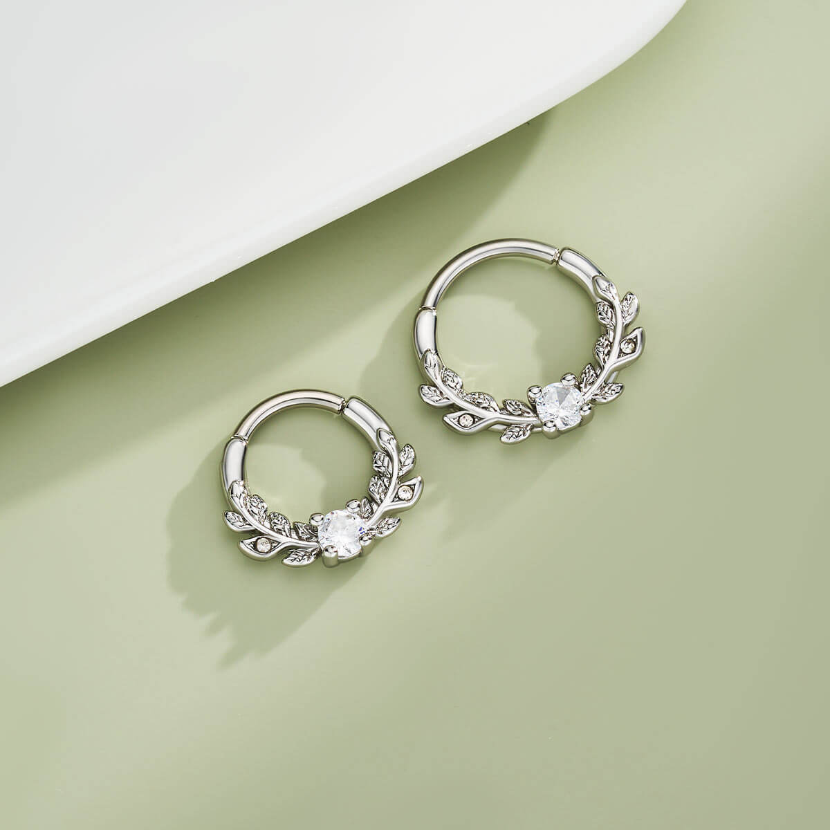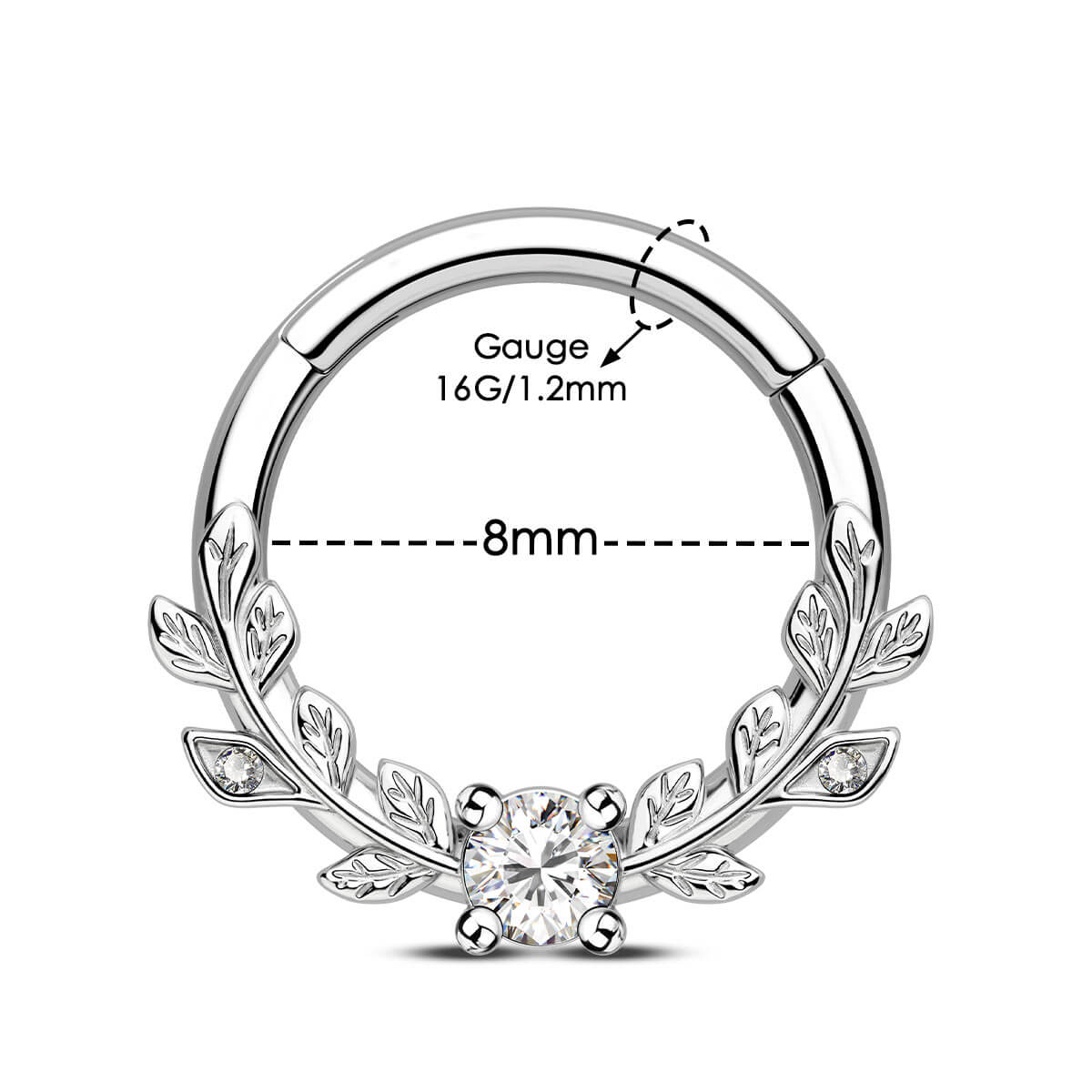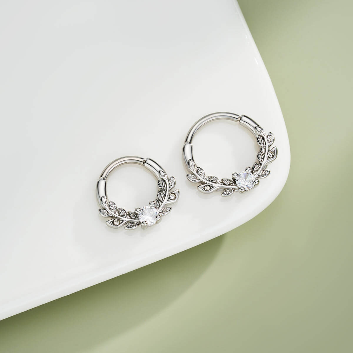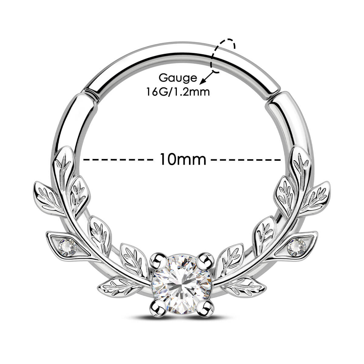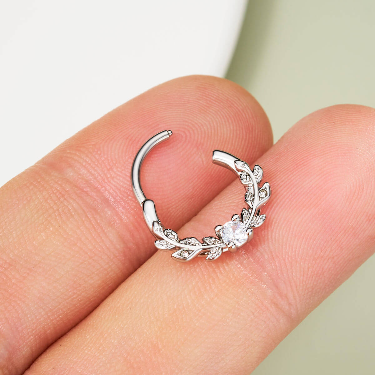 Symmetrical Leaves Clear CZ Septum & Daith Ring