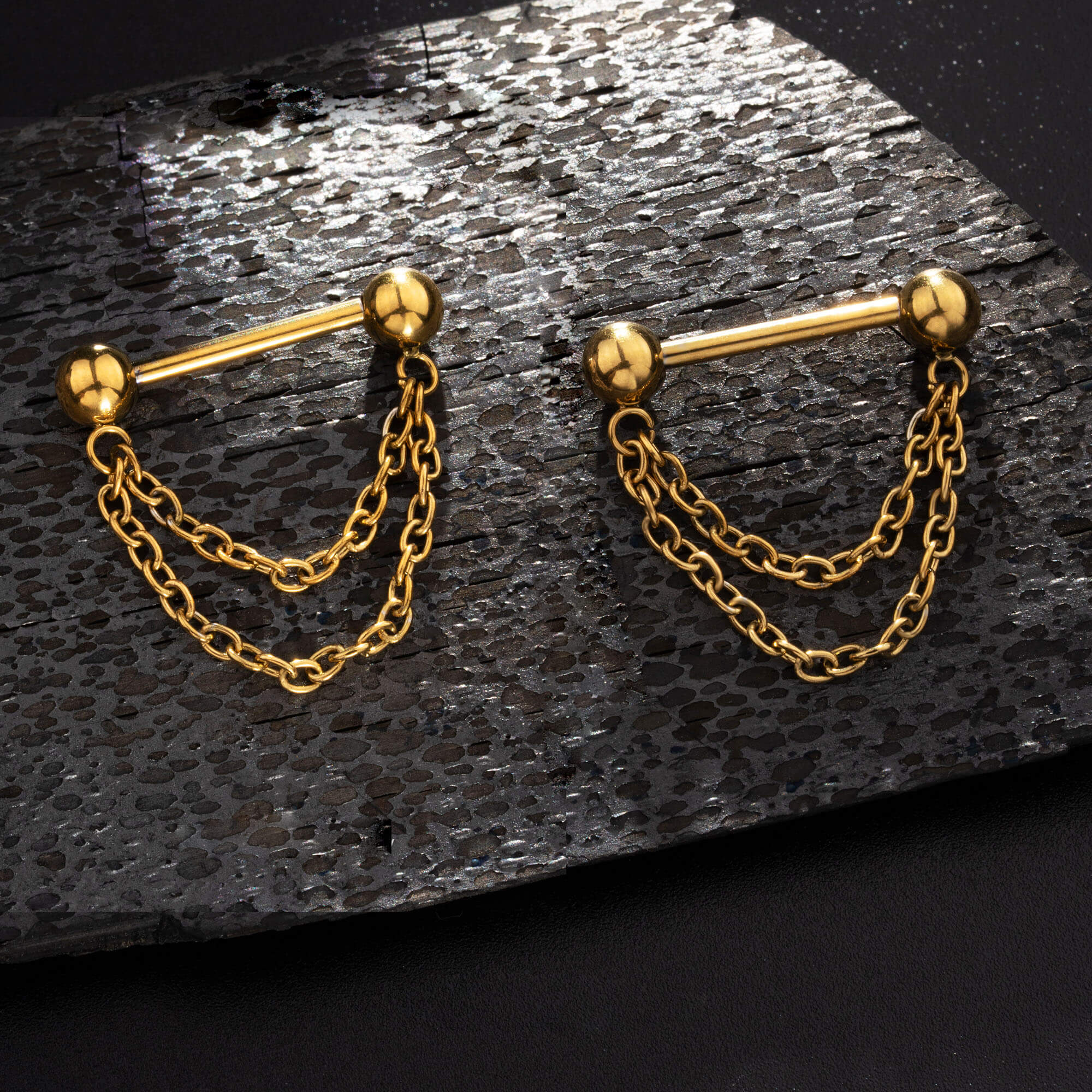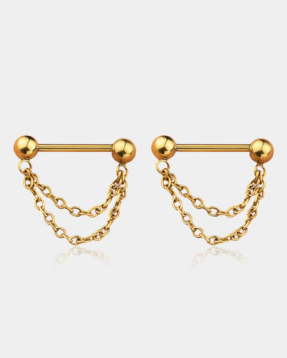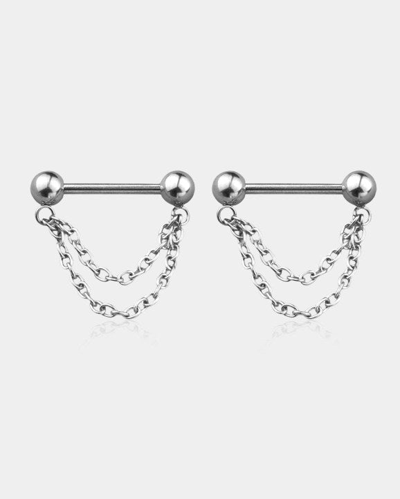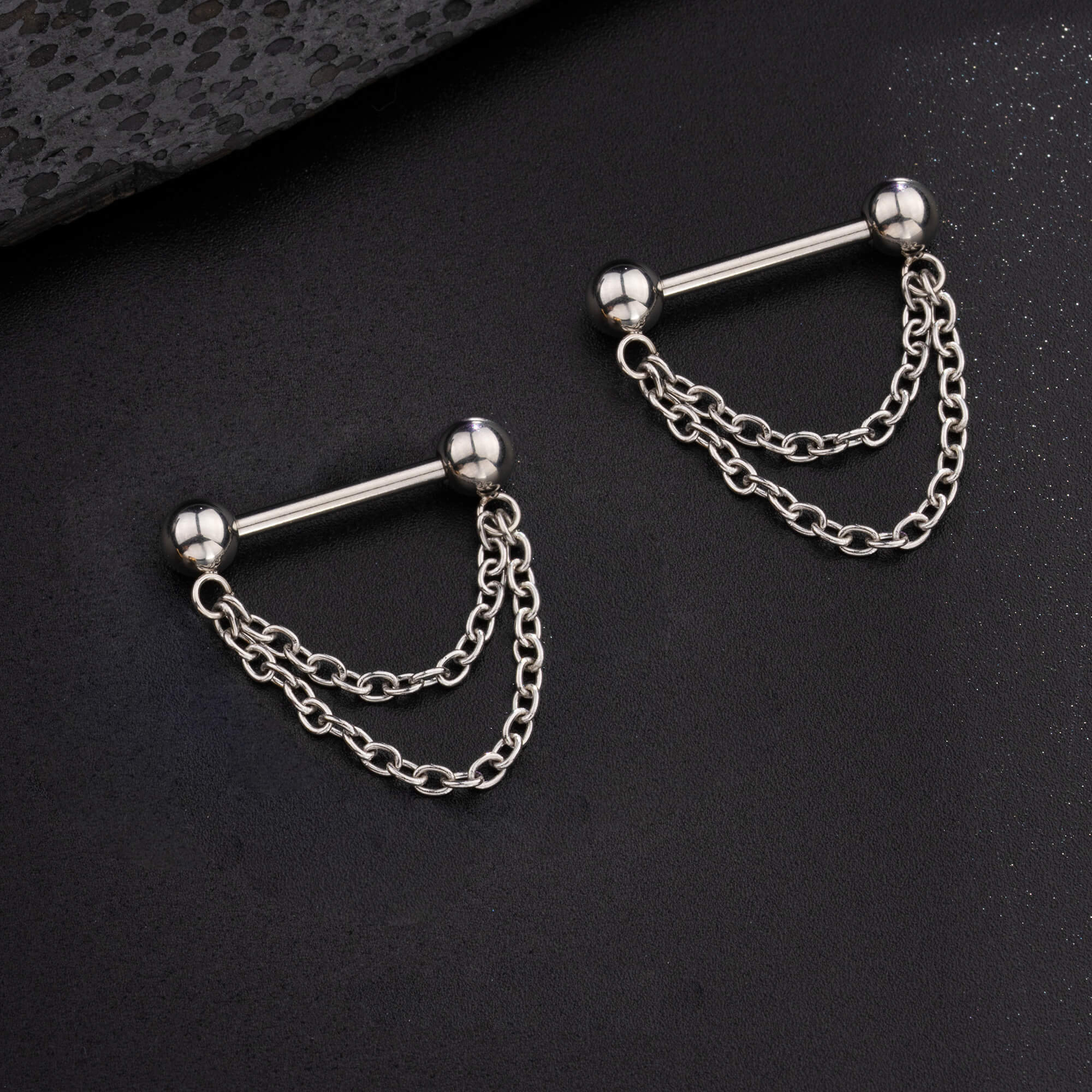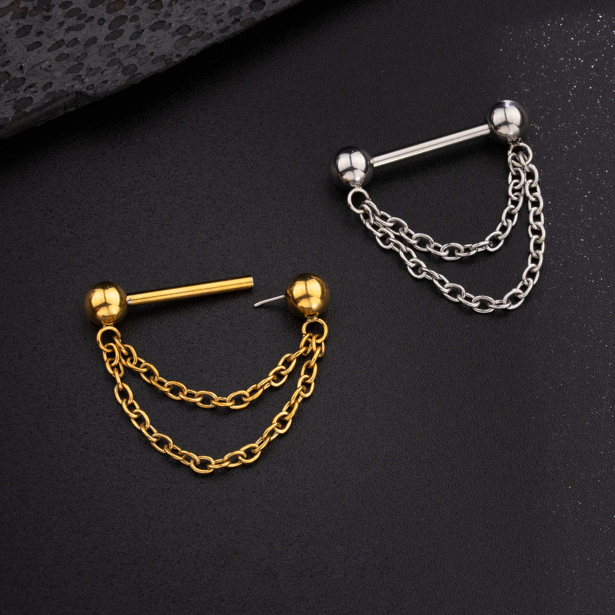 This stylish nipple ring chain is made from 316L stainless steel, offering durability and a sleek look. The double-chain dangle design adds a unique touch, available in two stunning colors: silver snd gold. Choose the shade that best suits your style and enjoy a bold, meaningful aesthetic.