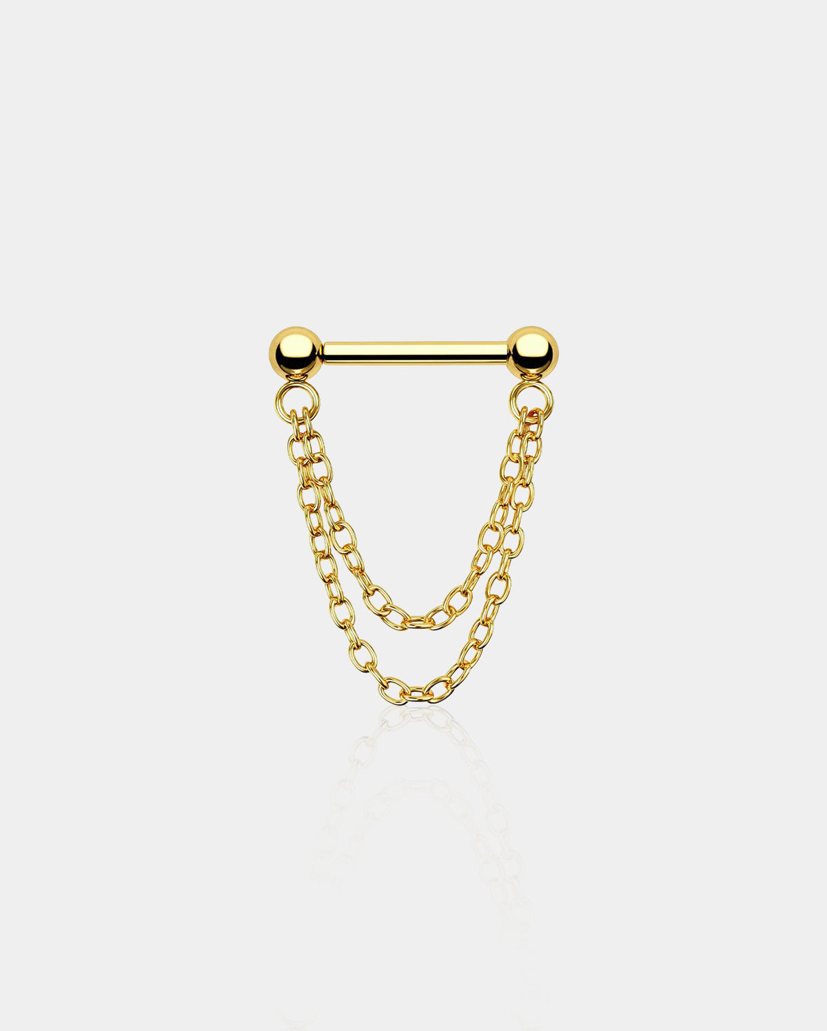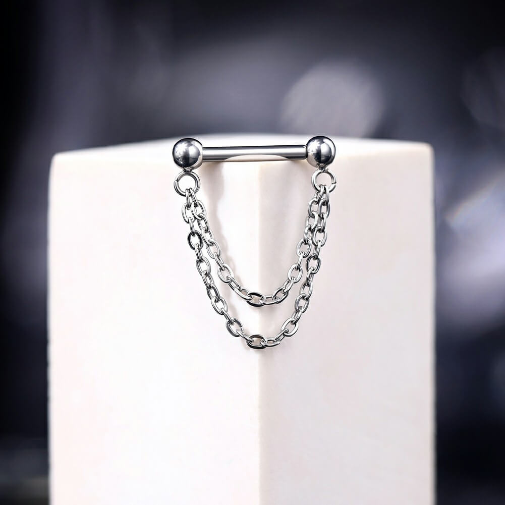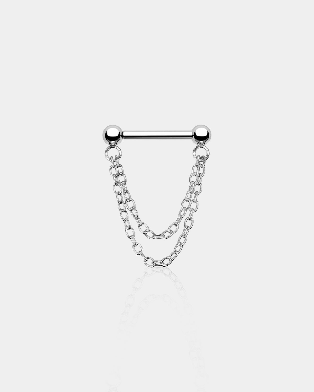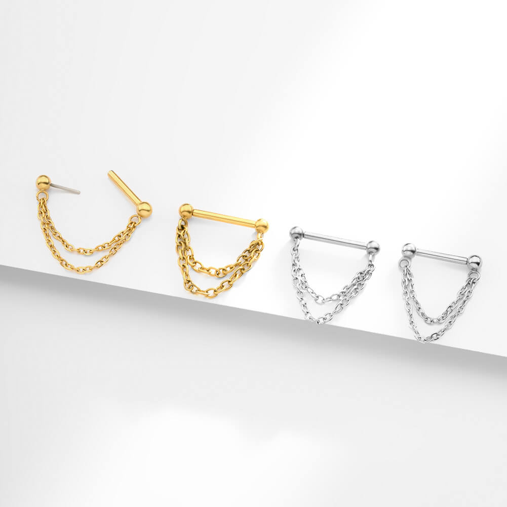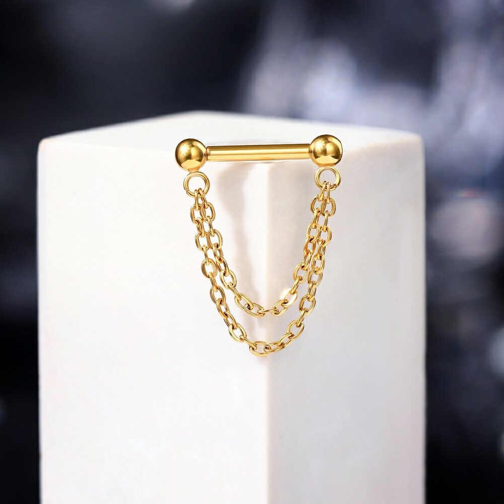 This septum ring is inspired by classic nipple dangle rings, the chain style on the nose is so unique, and definitely a must-have. It is a push-in threadless style, easy to wear and take off.