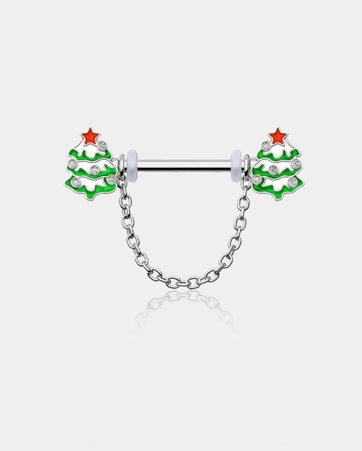This is a charming and spirited Christmas nipple ring that beautifully encapsulates the spirit of the holiday season. Its delightful Christmas tree design and snowy accents make it a perfect choice for those looking to infuse their style with the enchantment and merriment of the winter holidays.