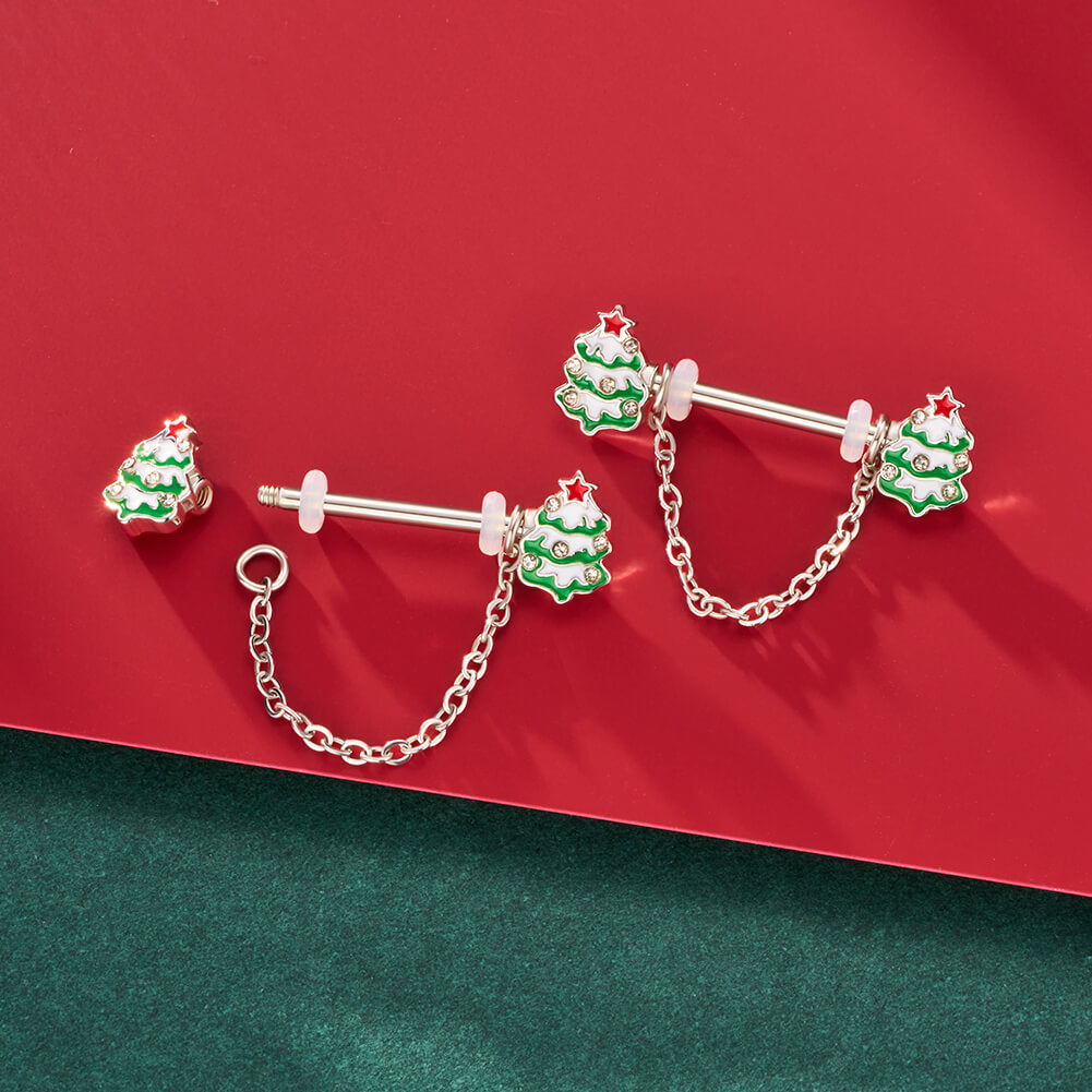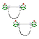 2PCS Chrismas Tree Dangle Nipple Barbell