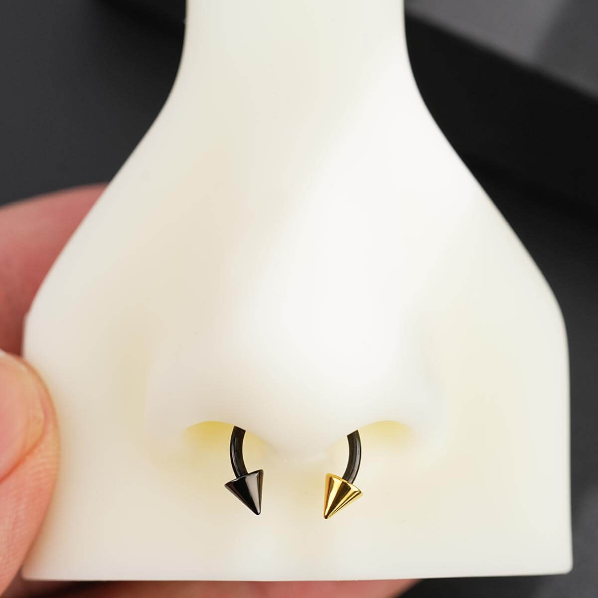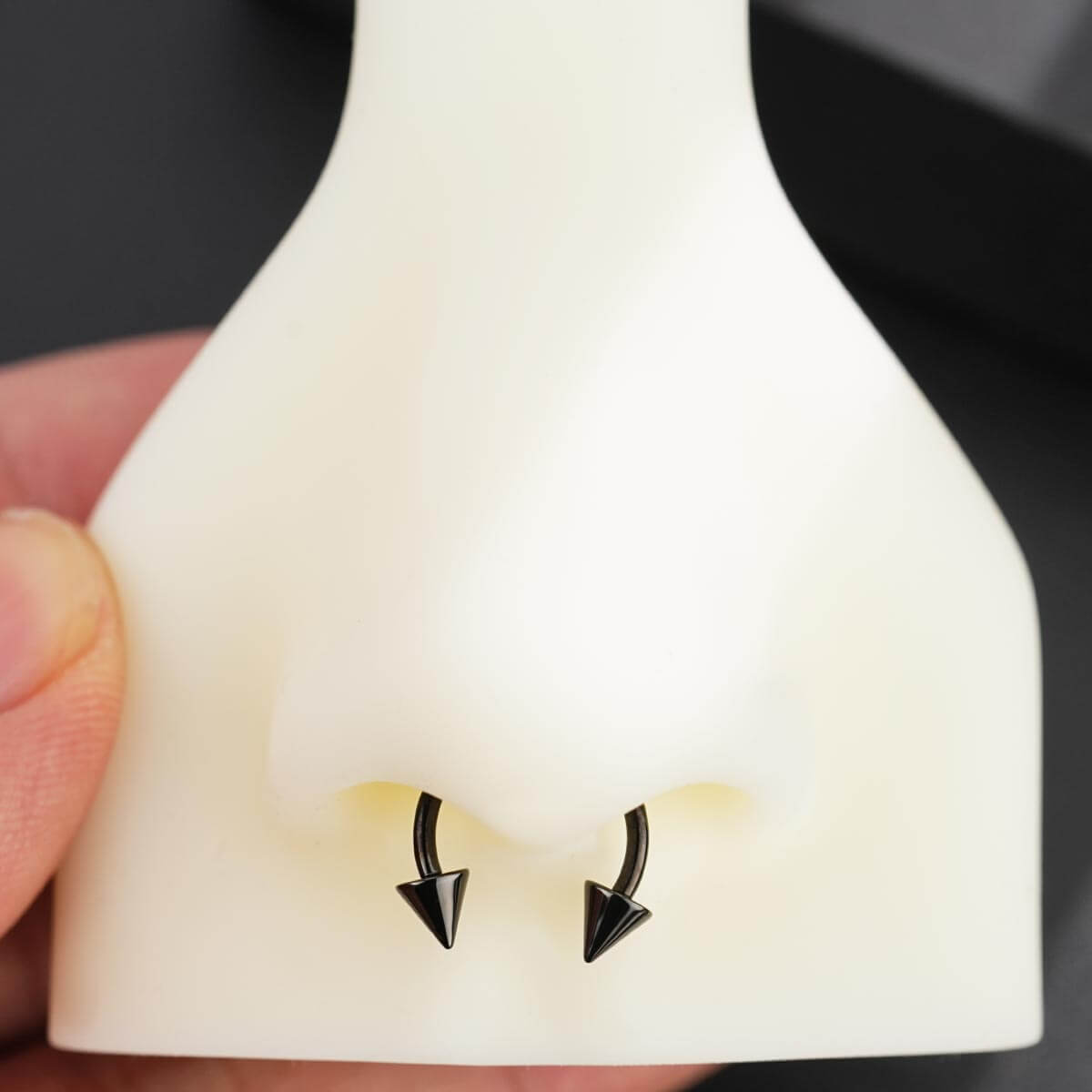 The striking gold-black color combination adds a luxurious yet edgy appeal, while the spike ends provide a rebellious touch perfect for making a statement. This CBR jewelry set includes two black septum rings, making it ideal for mix-and-match styling or sharing with a friend.