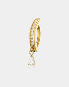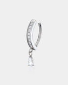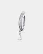 ● Featuring a curved bar lined with shimmering CZ stones and a dazzling teardrop dangle, it’s crafted from premium 316L stainless steel for durability and comfort.