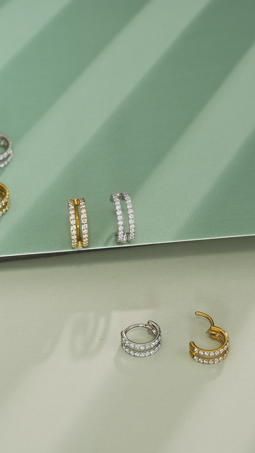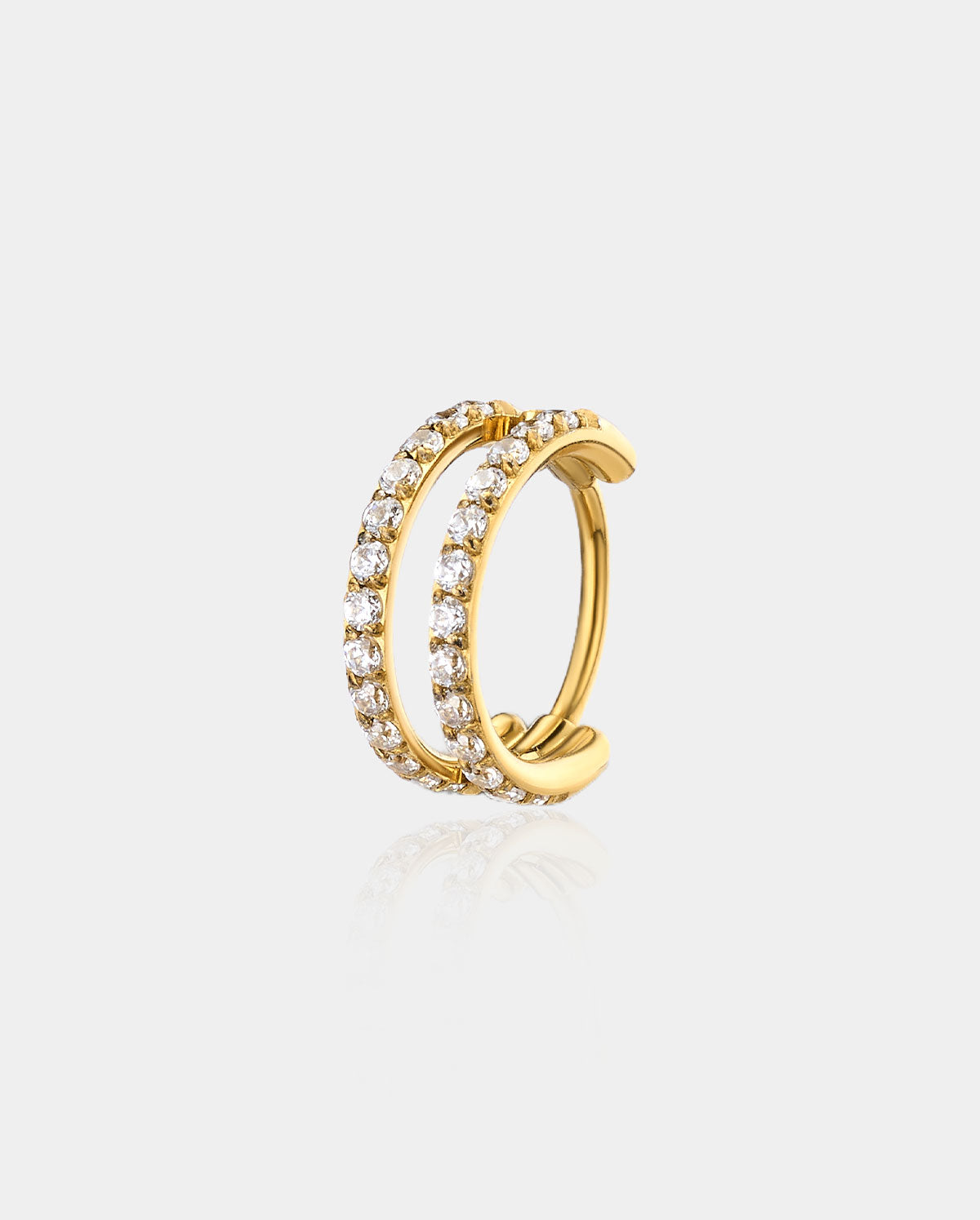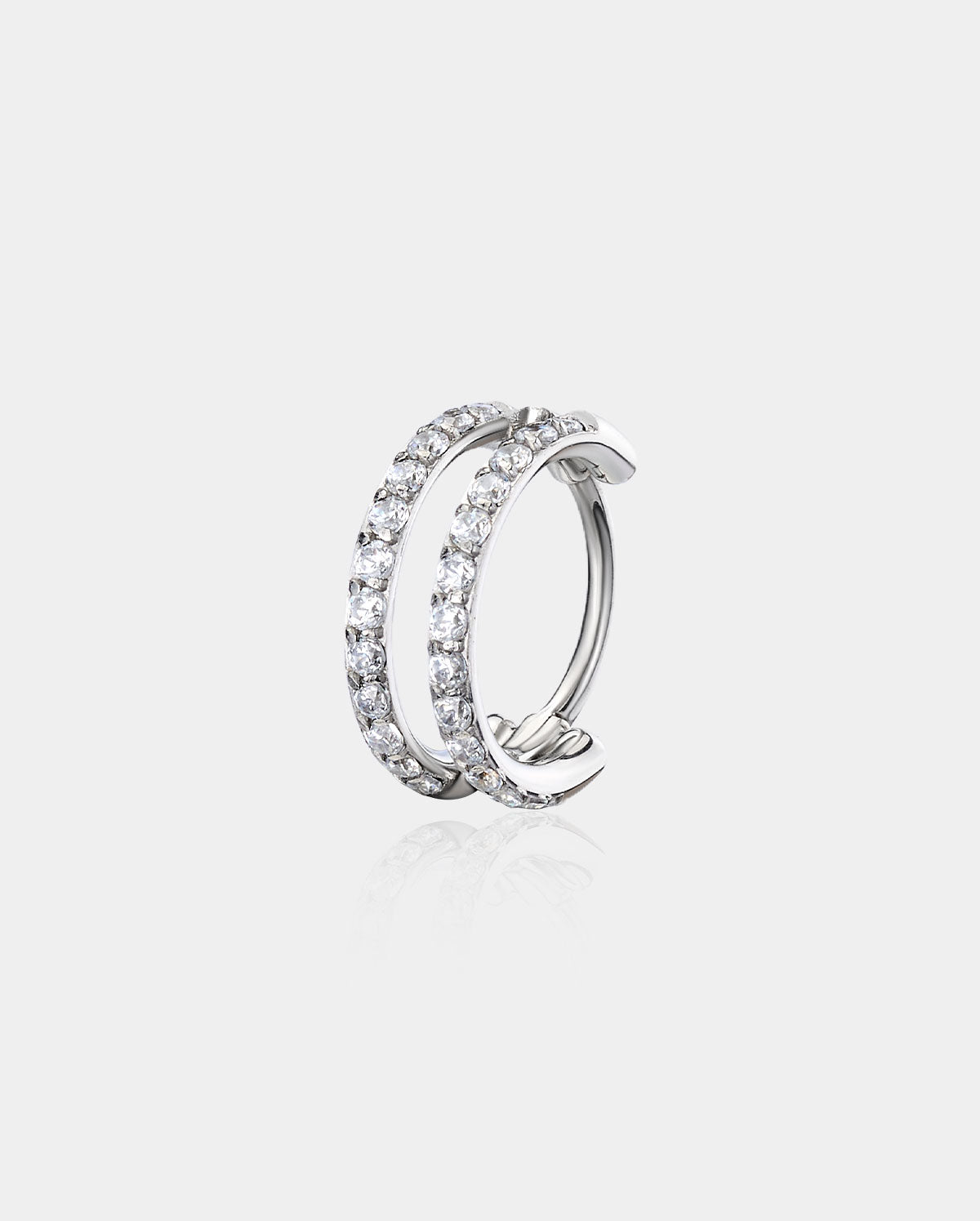 ● Featuring two rows of clear CZ stones, they are available in three sizes (6mm, 7mm, 8mm), perfect for nose ring, helix, and other piercings.
