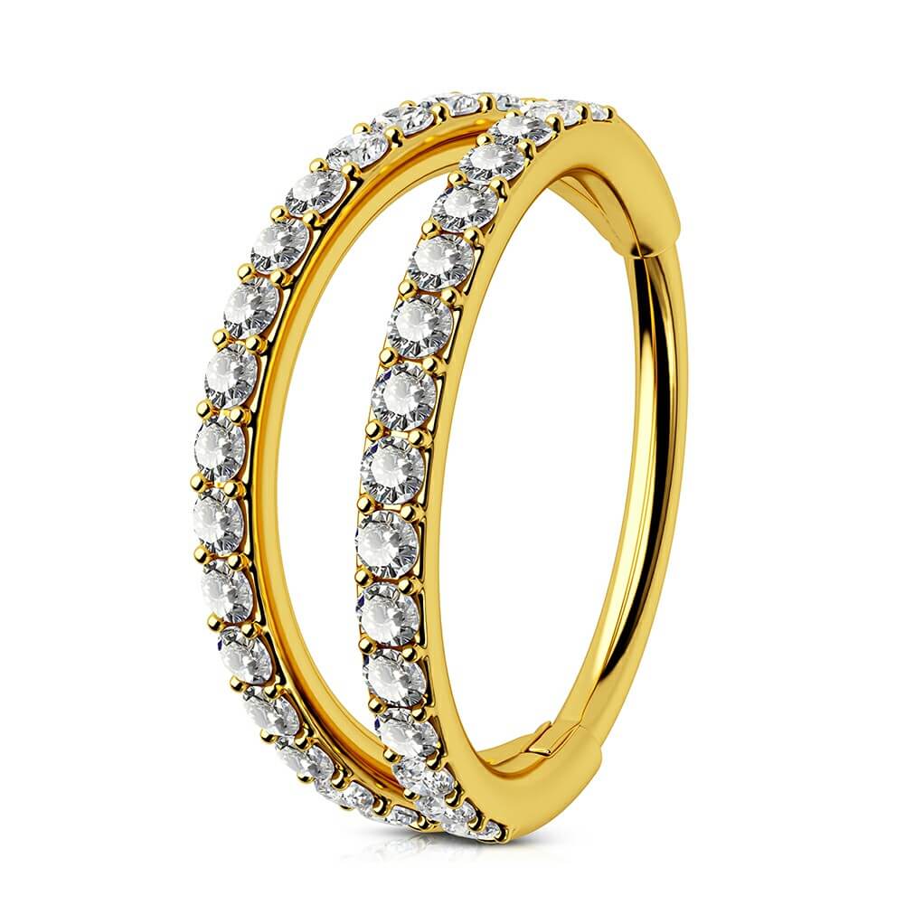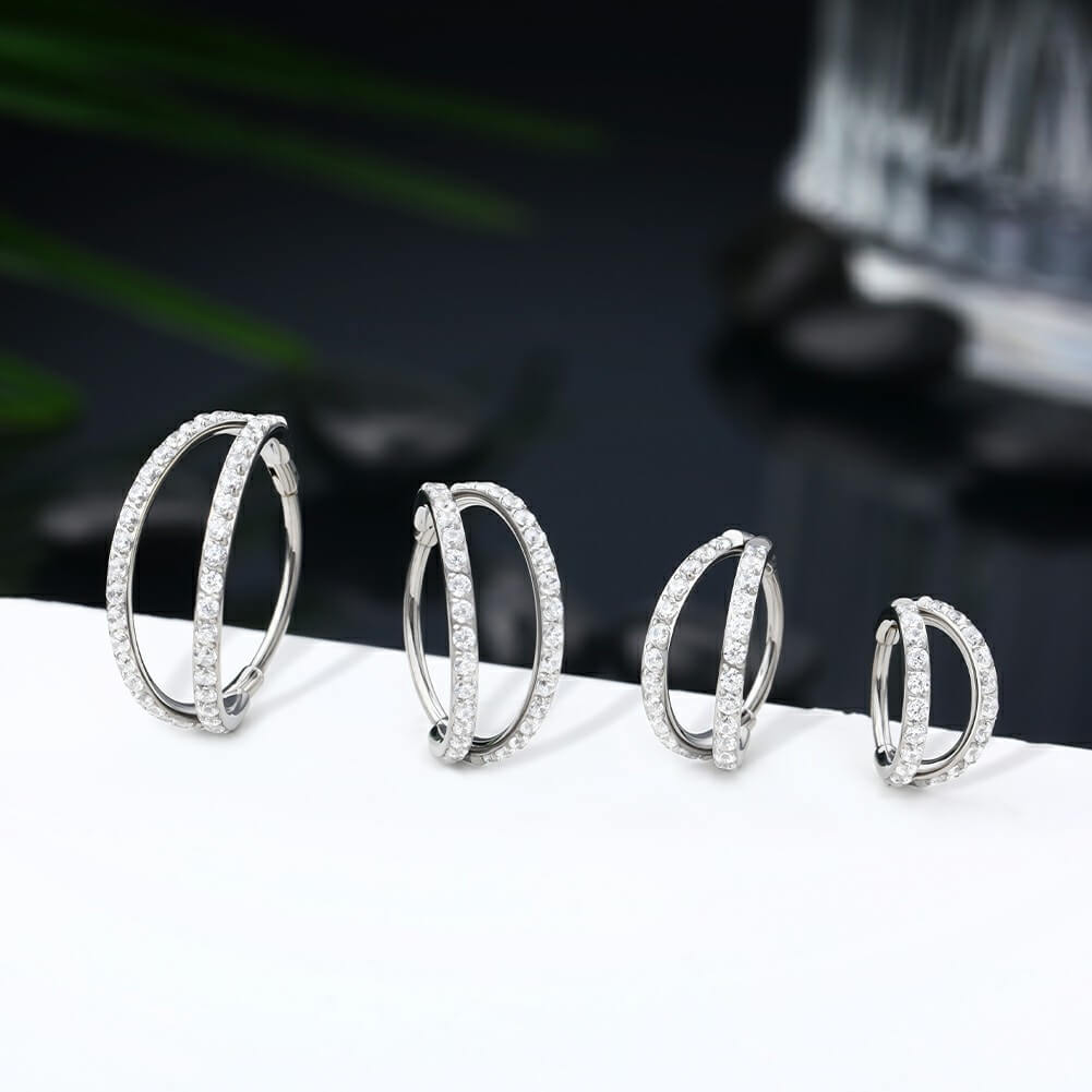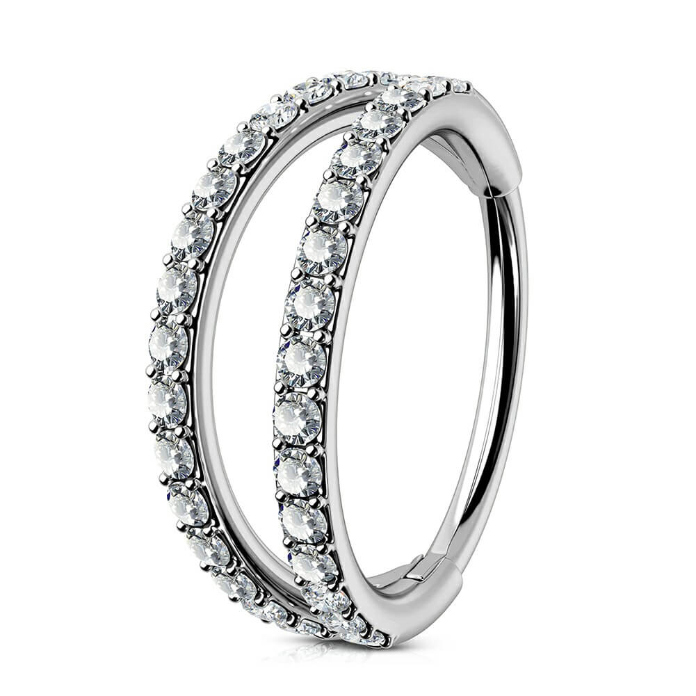 Concise Style: This double nose hoop features two hoops that join at the top forming a single (double) hoop ring with round clear luster AAA+ grade CZ gems. Double effect, in only one piercing. With a range of inner diameters available, this hoop is suitable for most body piercings, making it a great addition to any jewelry collection.