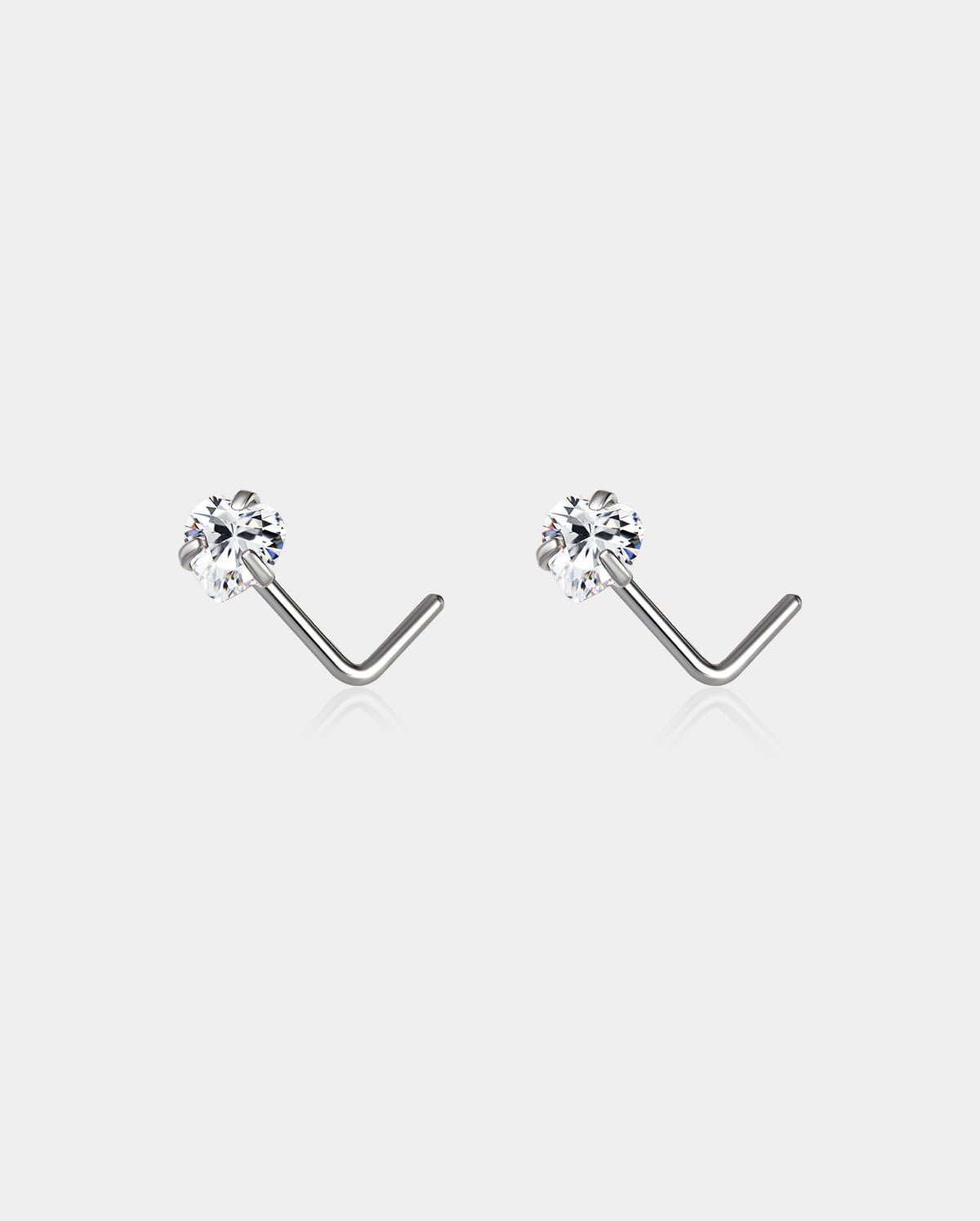 Add a romantic sparkle to your look with this 2-piece titanium heart-shaped CZ nose stud set—designed for double nostril wear.