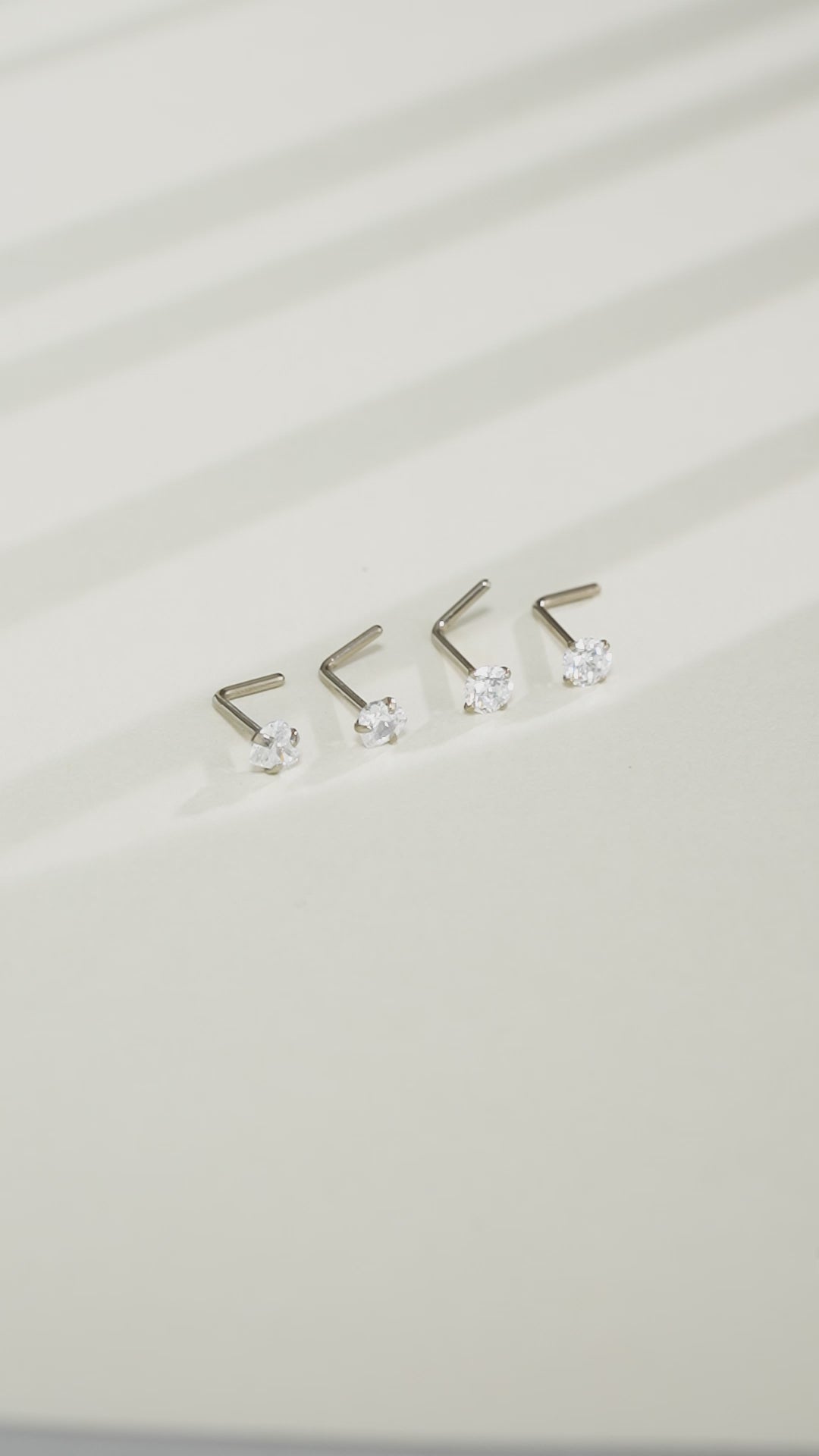 Symmetry meets sparkle — this 2-piece titanium CZ L shaped nose stud set is designed for double-side styling with comfort and elegance.