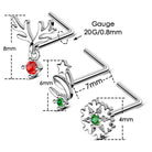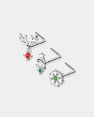 The 20G Reindeer/Star/Snowflake Christmas Nose Studs Pack is a delightful collection of nose studs designed to infuse your holiday season with a touch of festive charm. This pack features a variety of nose studs, each adorned with a different Christmas-themed design, including reindeer, star, and snowflake.