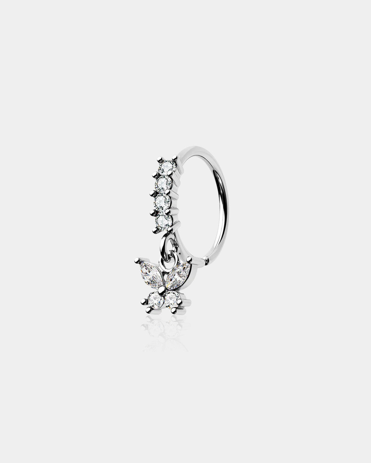 Butterfly Dangle Bezel Set CZ Nose Hoop