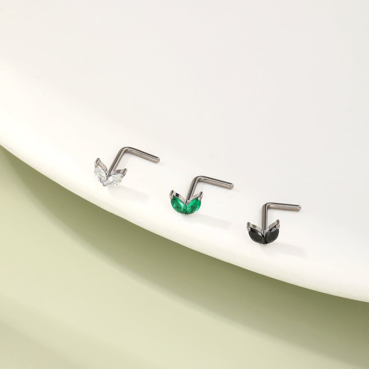 CZ Leave L-Shaped Titanium Nose Stud
