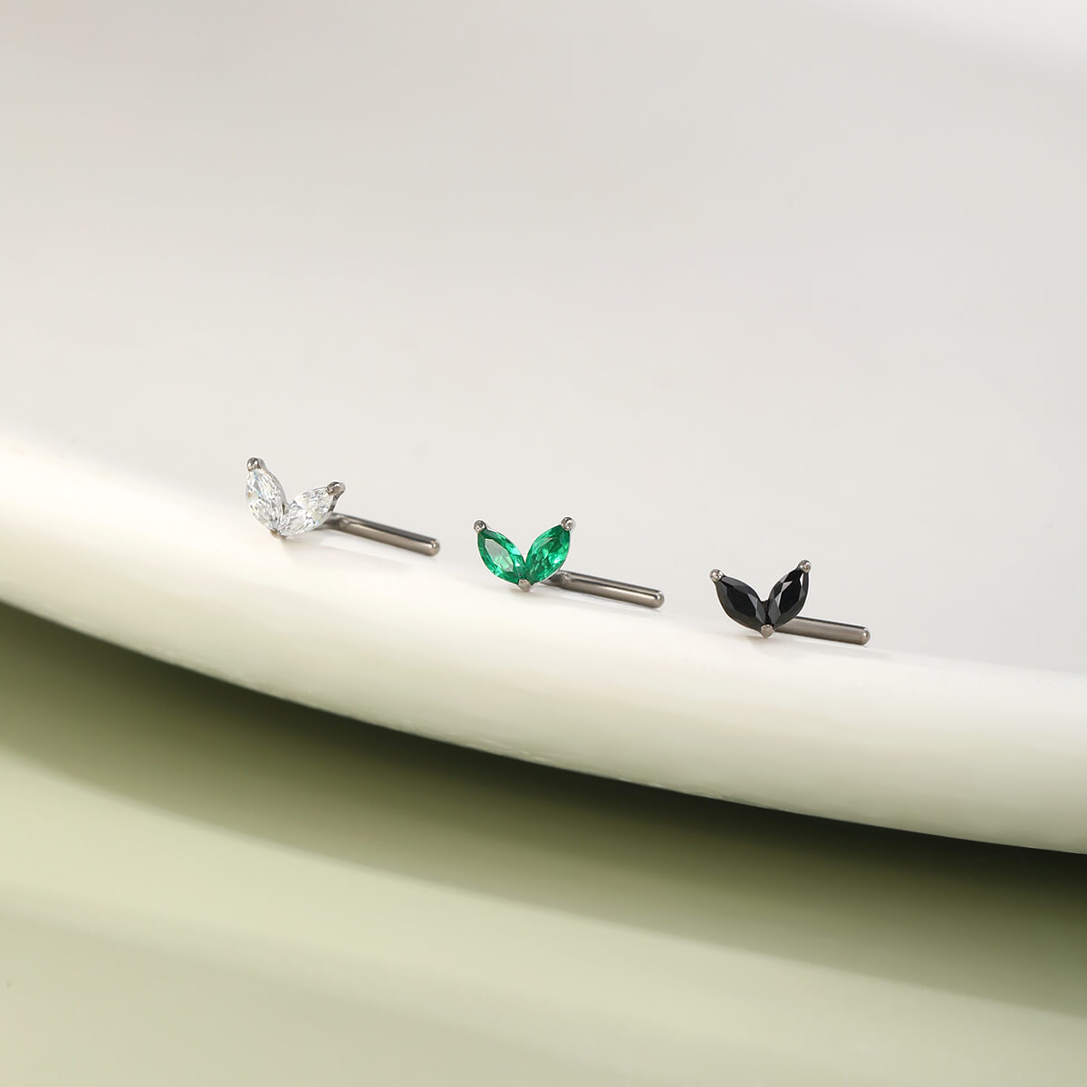 ● This 20G titanium nose stud featuring leaves CZ top exuding a sense of organic charm.