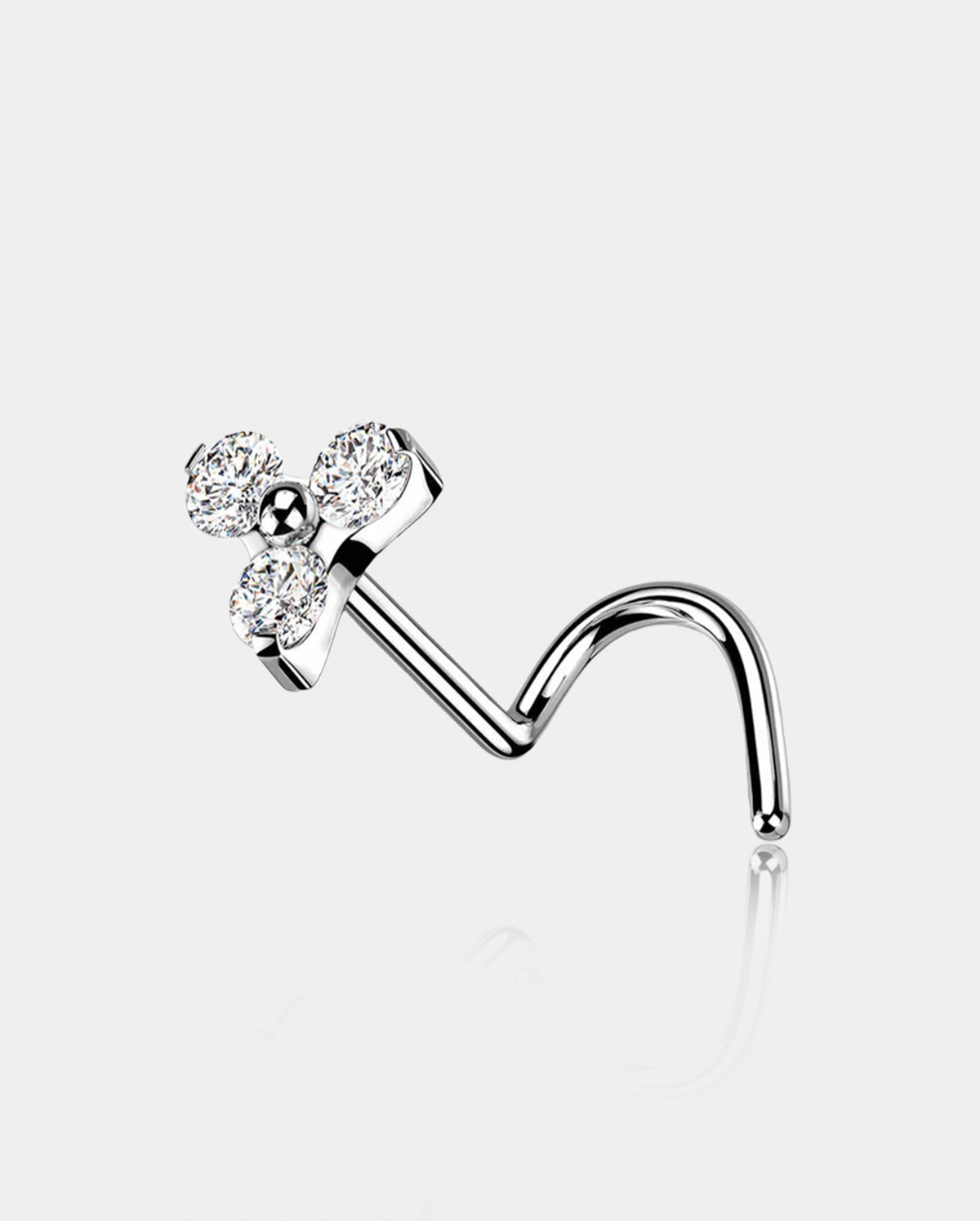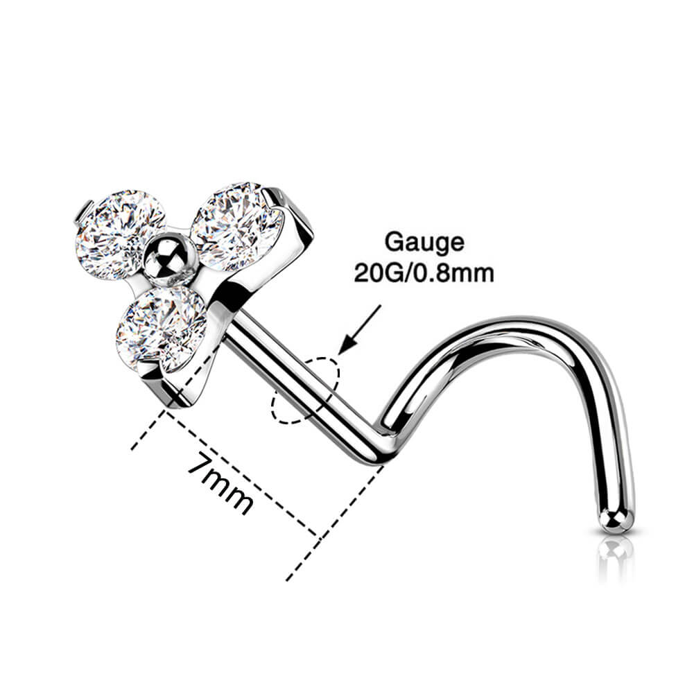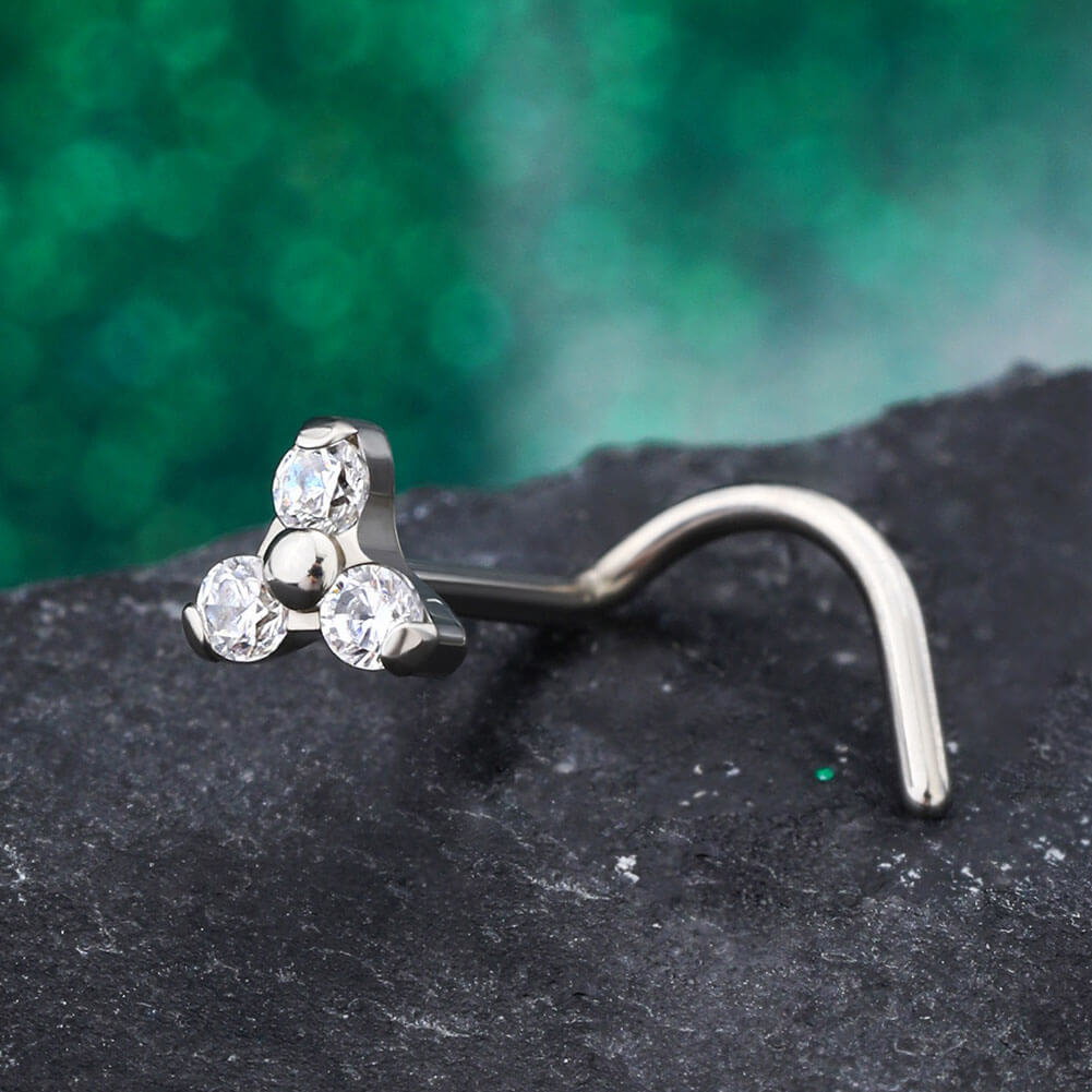This subtle but stylish dainty nose stud features three clear accents end, perfect for a look that's fashionable but not over the top. It will reflect the tinny shining light inadvertently under the light. They’re made of implant-grade titanium which is the best material for fresh piercing or sensitive skin.