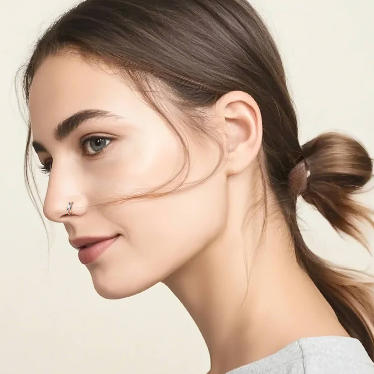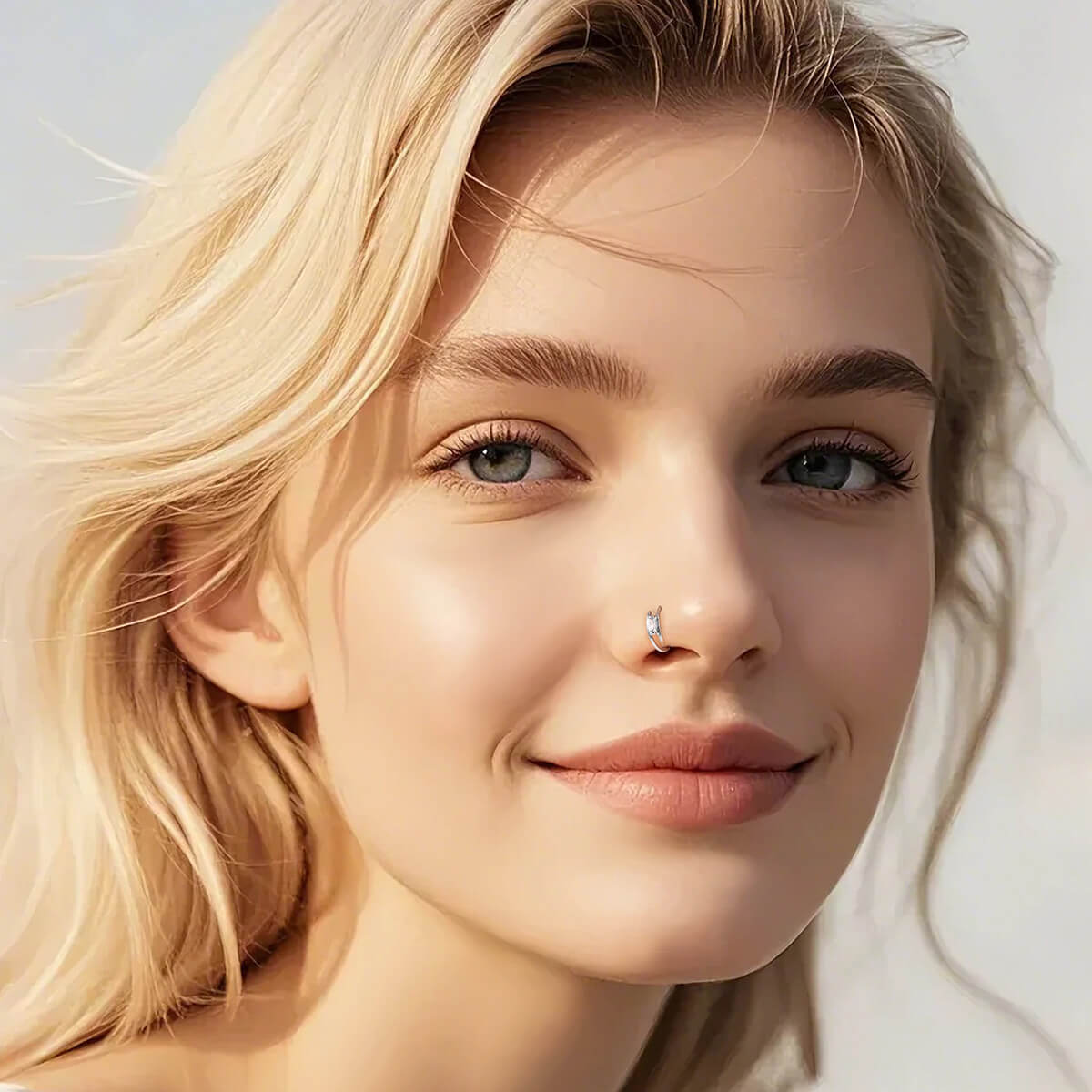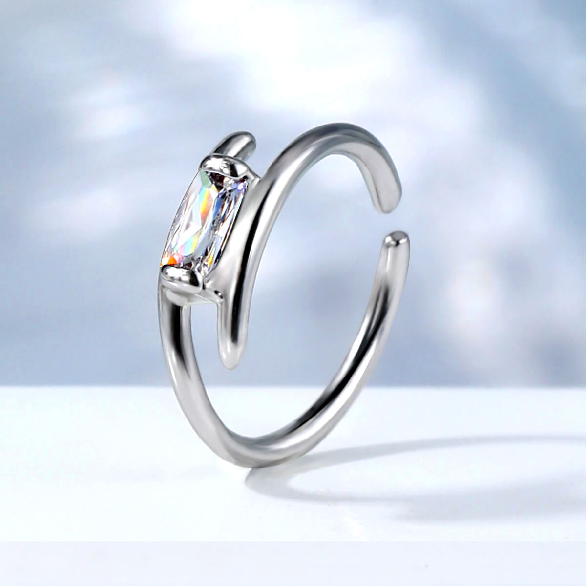 This unique nose hoop features a rectangular cubic zirconia, giving it a modern and geometric edge that stands out from traditional circular designs.
