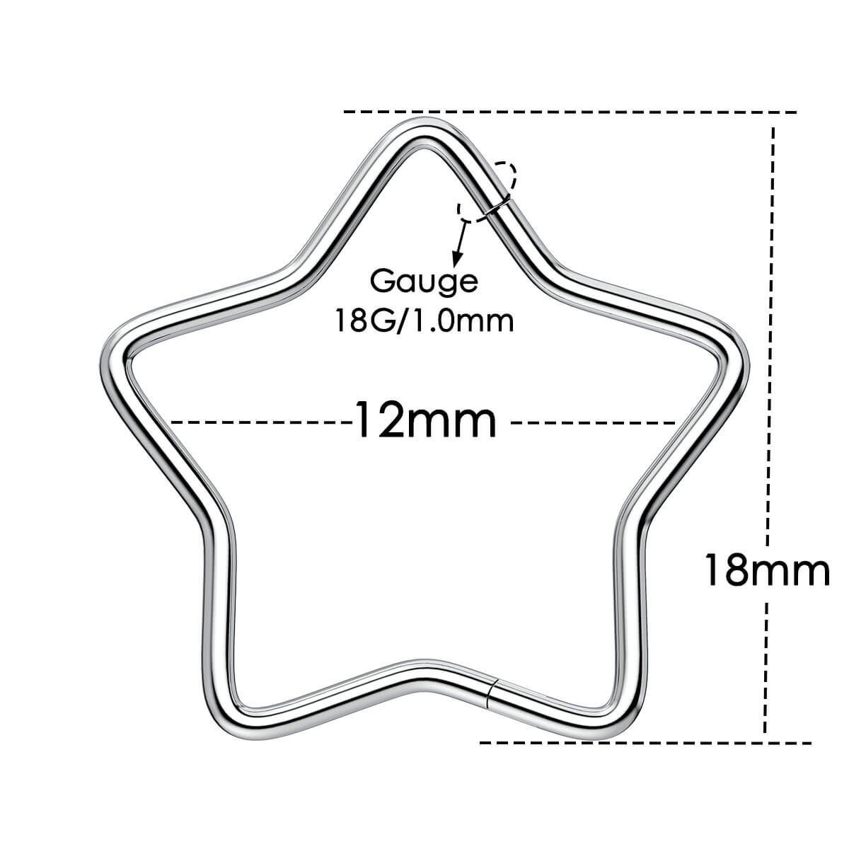 This star nose ring is a chic and durable piece of body jewelry designed to elevate any nose piercing. Crafted from ASTM F-136 titanium, it offers hypoallergenic properties, making it suitable for sensitive skin. The ring features a hinged segment mechanism for effortless insertion and secure closure, and the star shape adds a touch of celestial charm. With an 18-gauge size, it ensures a comfortable and snug fit. Combining practicality with a unique star design, this nose ring is perfect for those looking to infuse their style with elegance and a hint of whimsy.