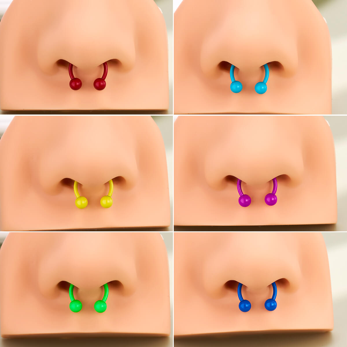 Oufer X Roly 6PCS Rainbow Set Multicolored Horseshoe Septum Rings