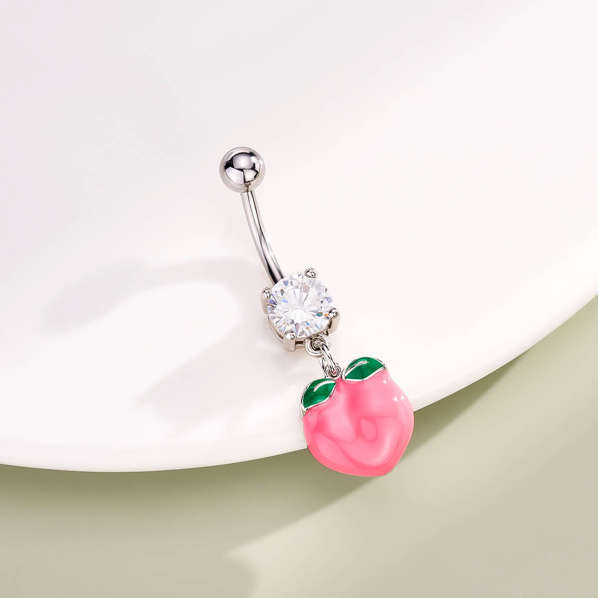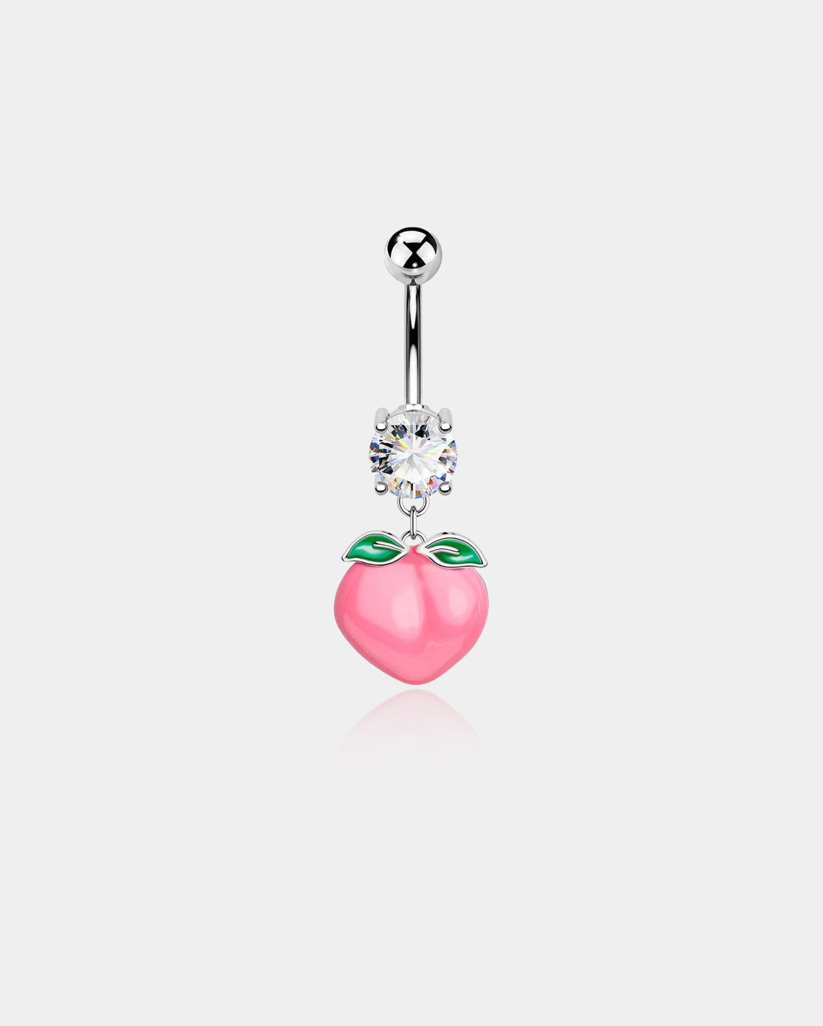 Developed by Oufer in collaboration with Roly's innovative design concepts, at the center of its design are shiny CZ and plump peach pendants that dangle gracefully. This pink belly button ring is perfect for those who love to express their fun and flirty side through fashion.